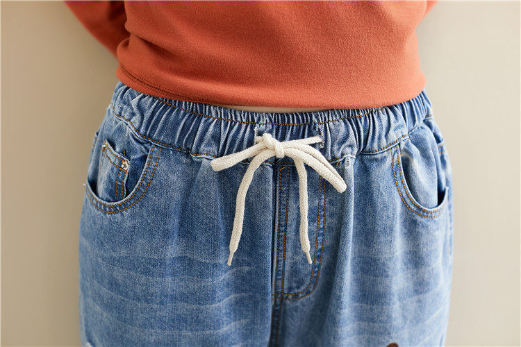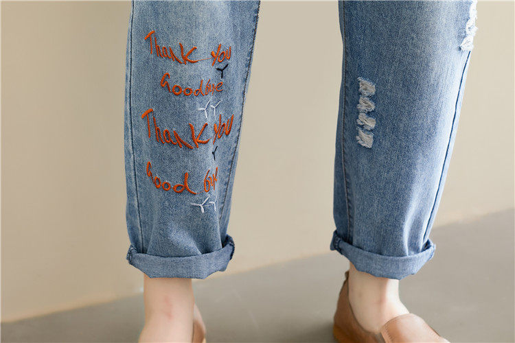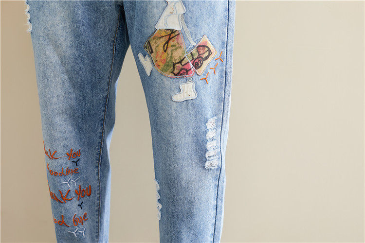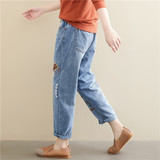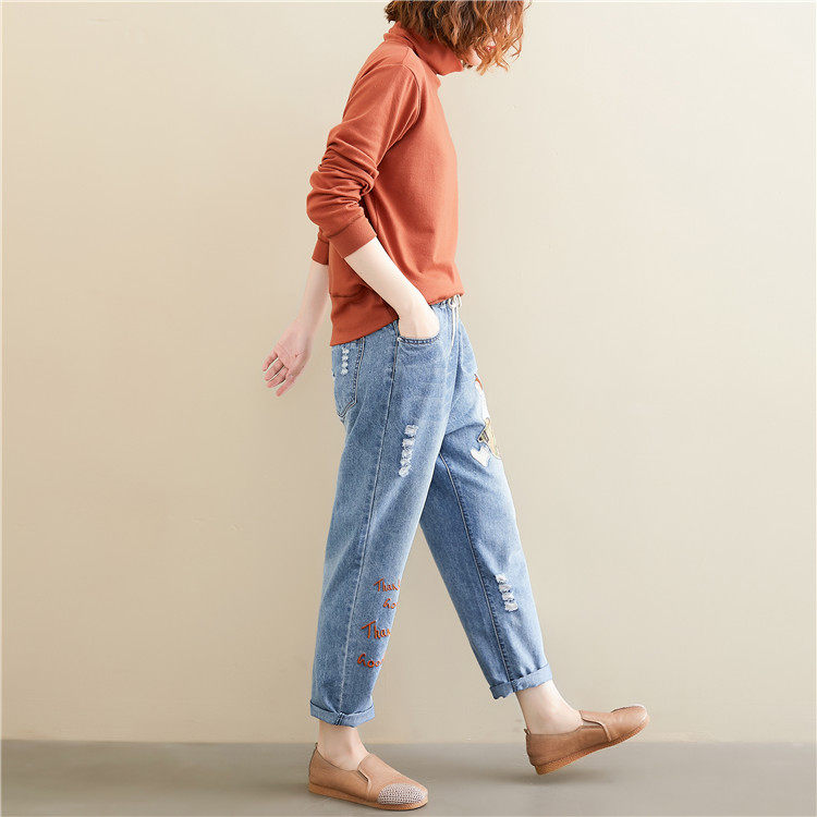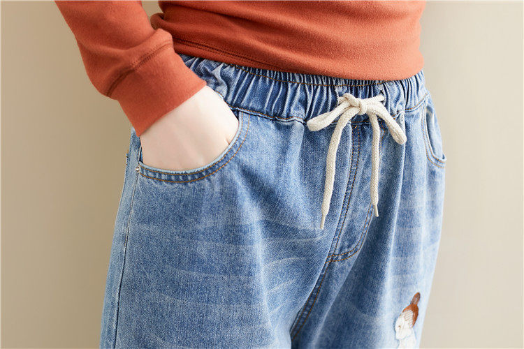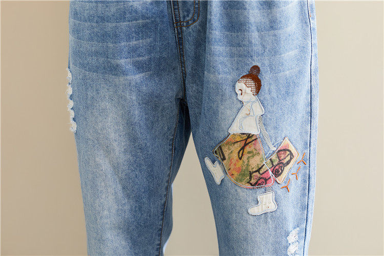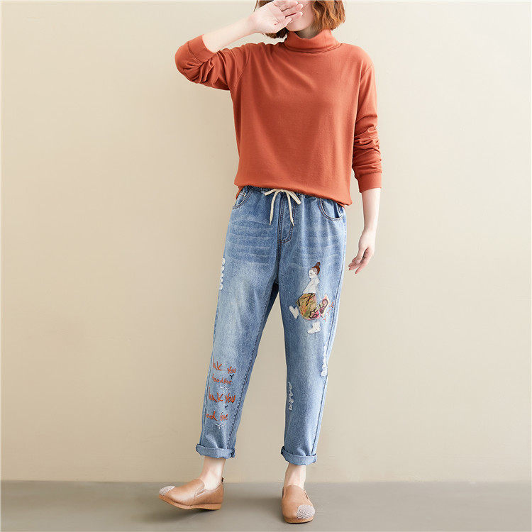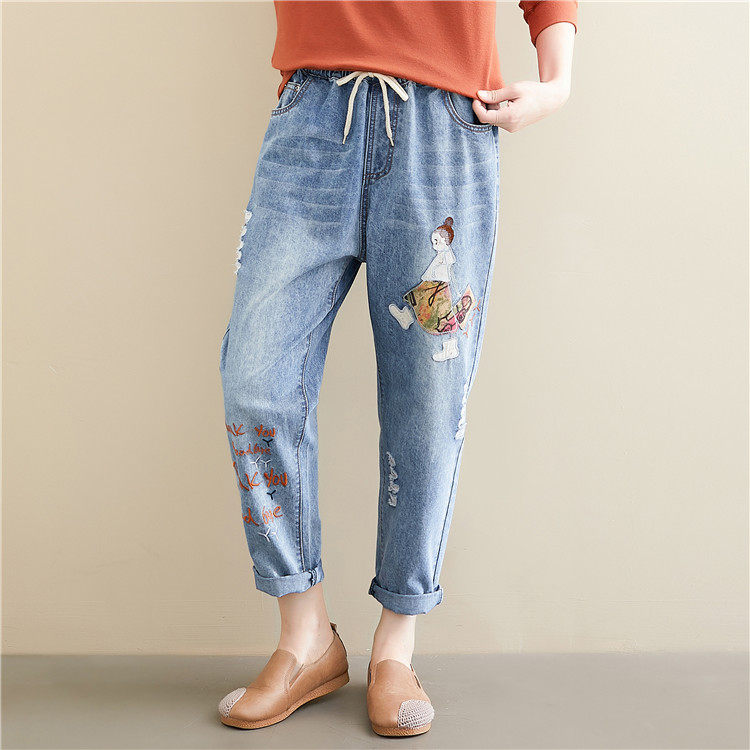 Весенние мультяшные джинсы, универсальные штаны, в корейском стиле, большой размер, с вышивкой, эластичная талия