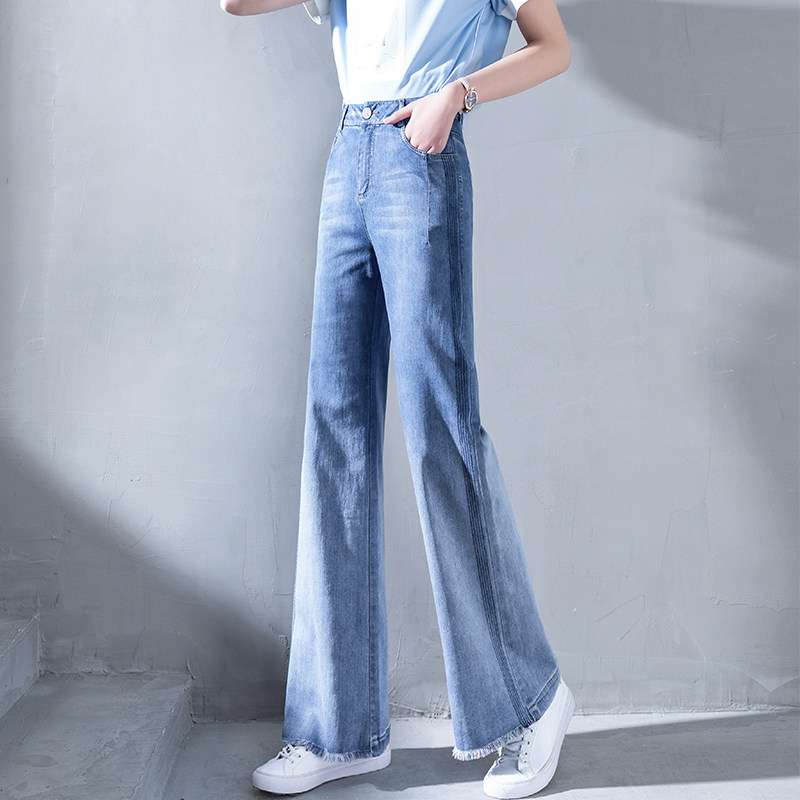 Джинсы, штаны, градиент, высокая талия, осенние, свободный прямой крой