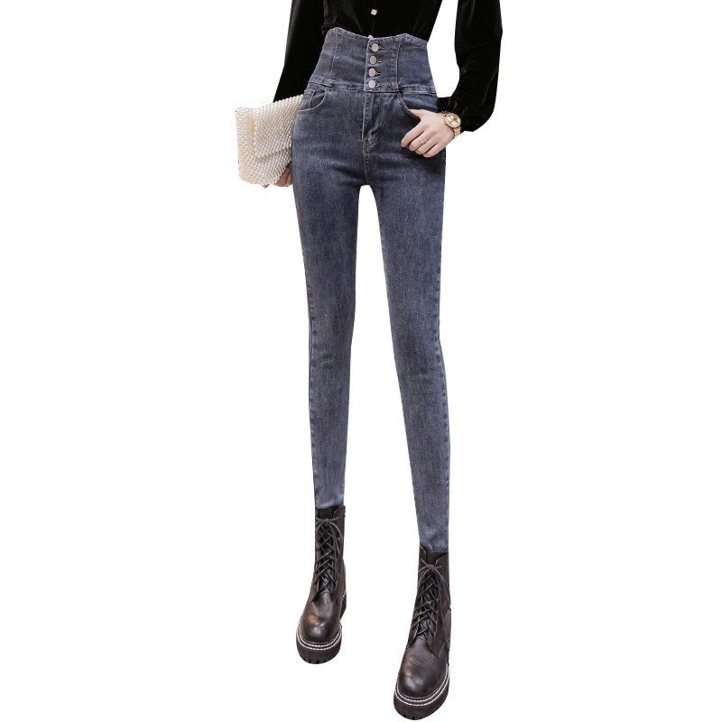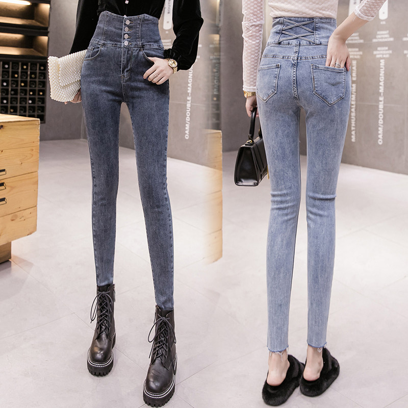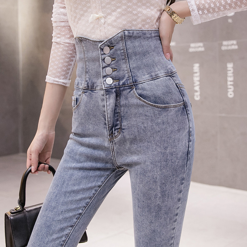 Осенние джинсы, штаны, популярно в интернете, высокая талия, в корейском стиле, в обтяжку