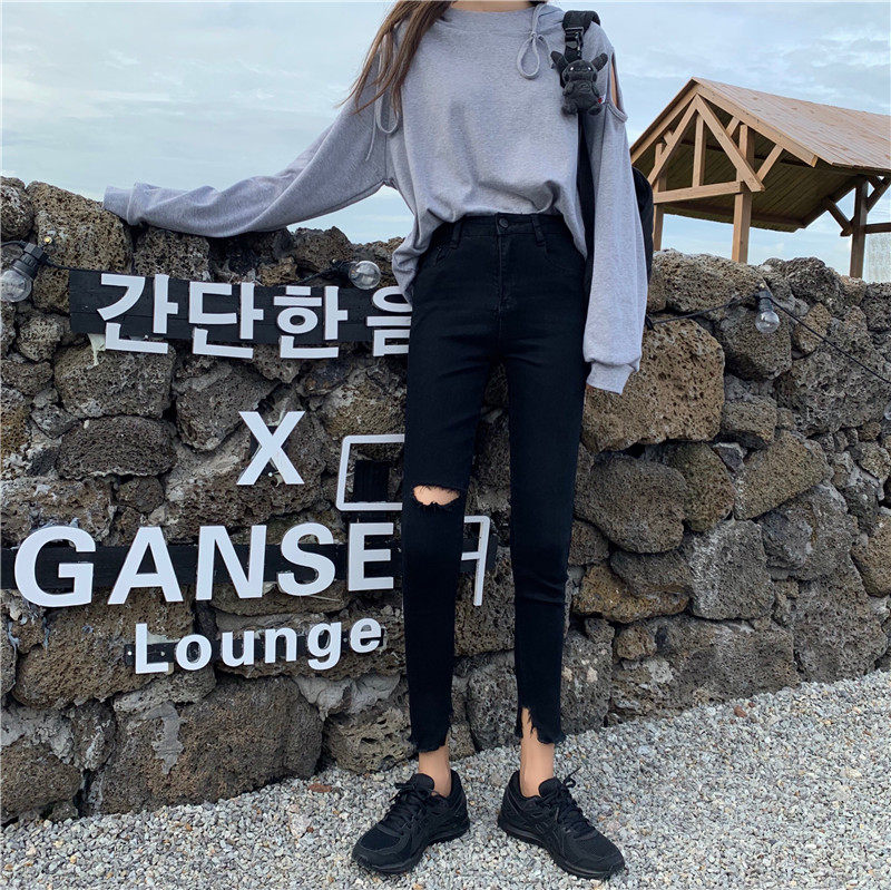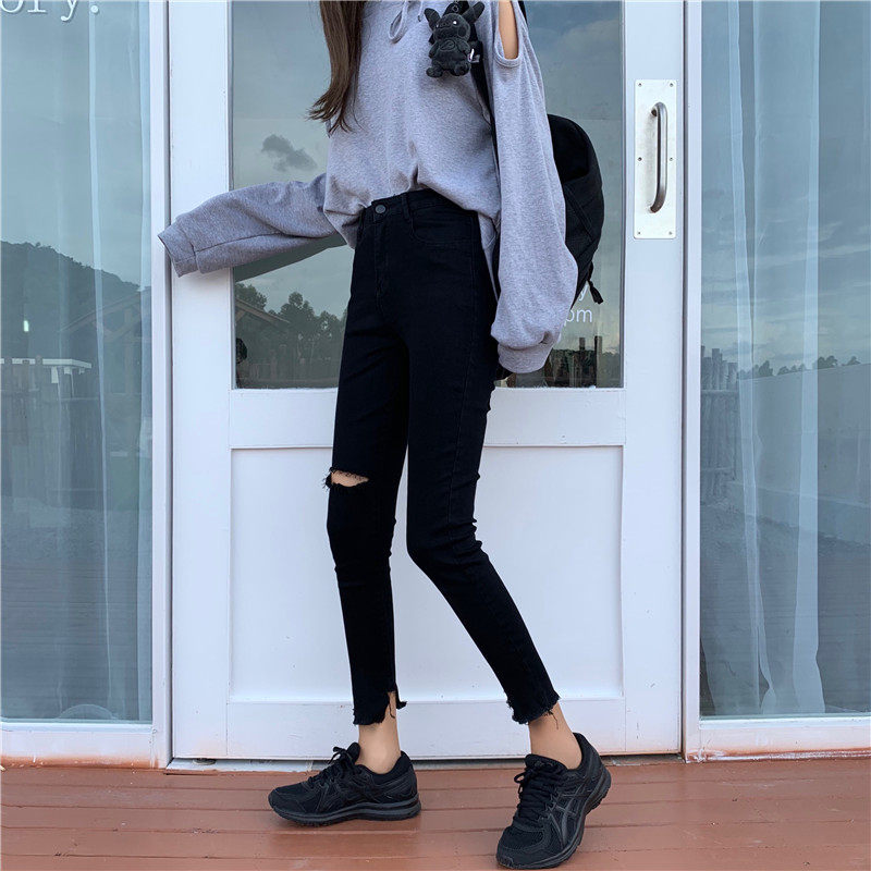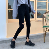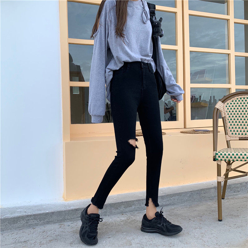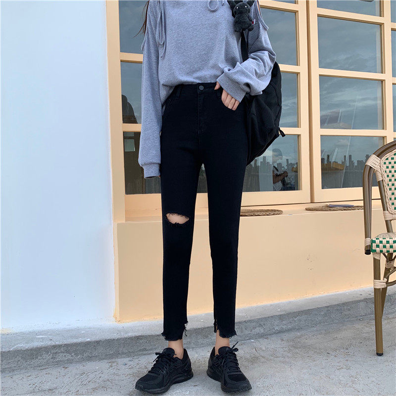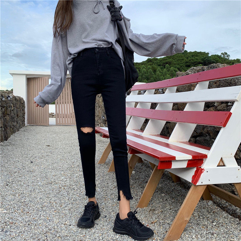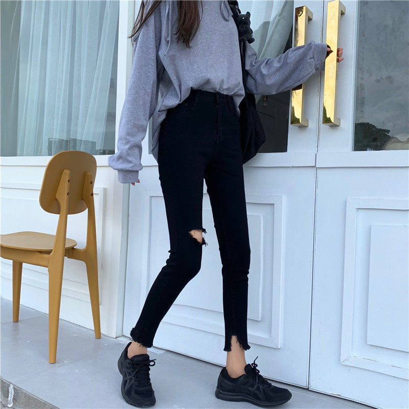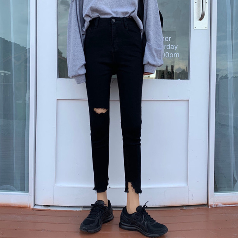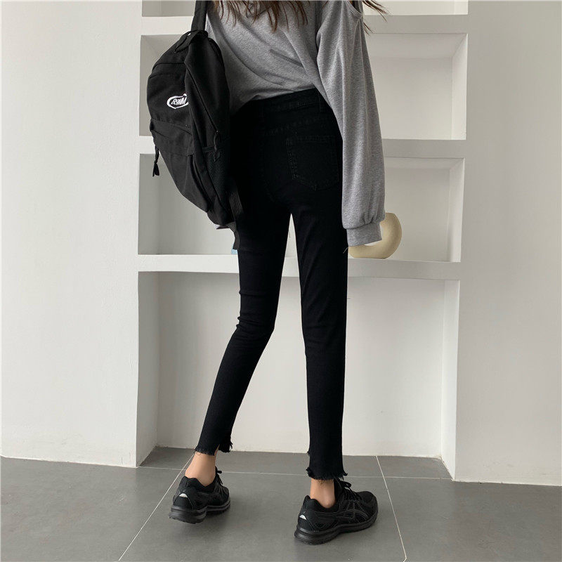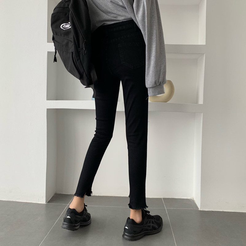 Черные приталенные джинсовые штаны, коллекция 2022, в корейском стиле, высокая талия, в обтяжку