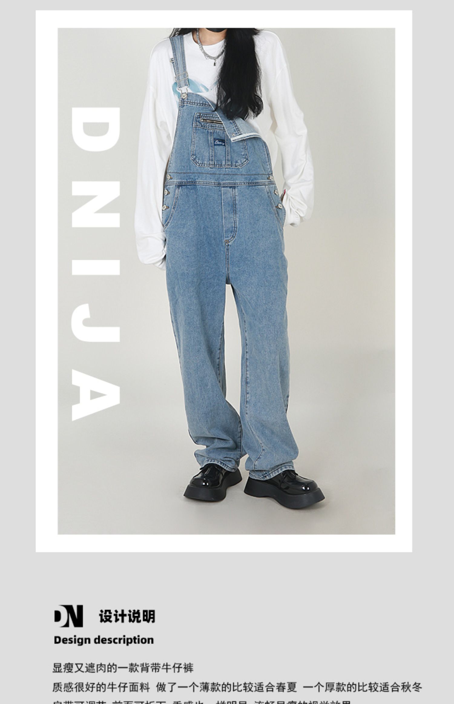 Ретро джинсовый комбинезон для отдыха, оверсайз