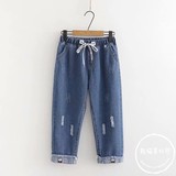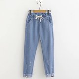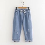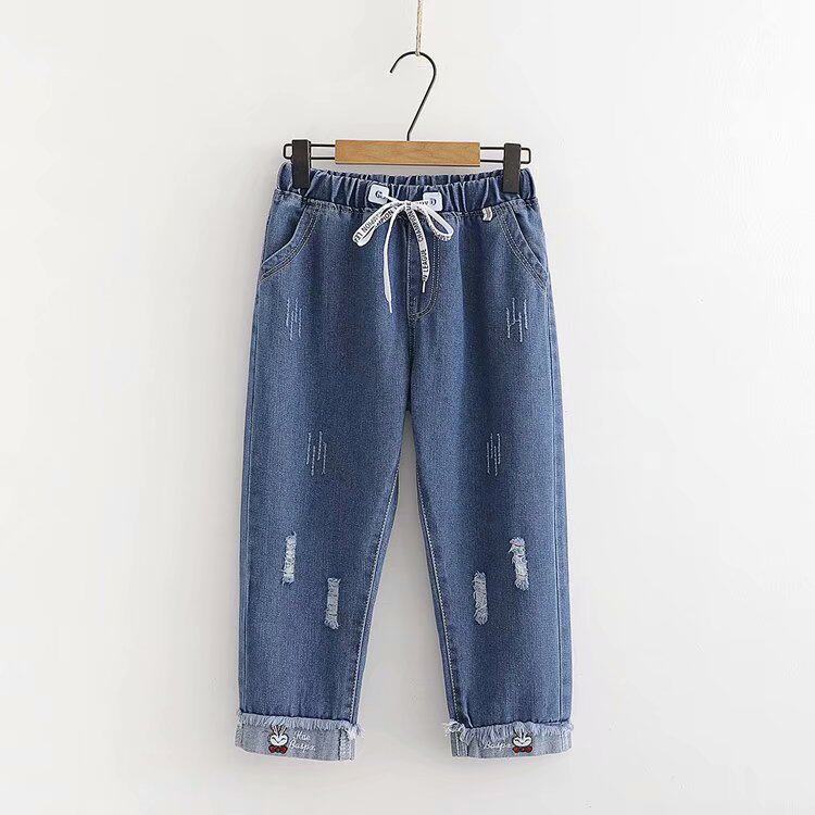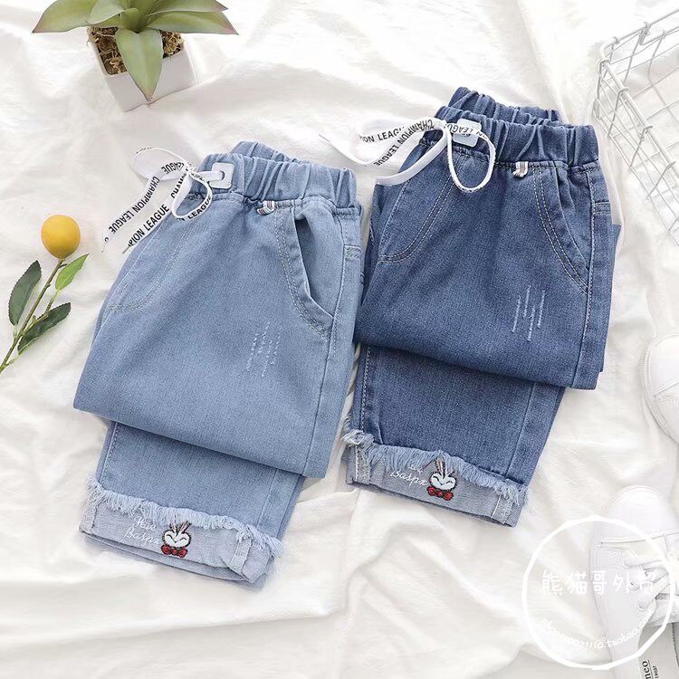 Летние штаны, летняя одежда для школьников и студентов, джинсы, коллекция 2023, для средней школы, оверсайз, свободный прямой крой