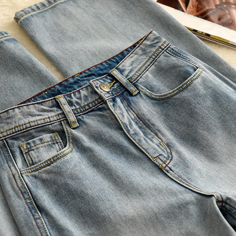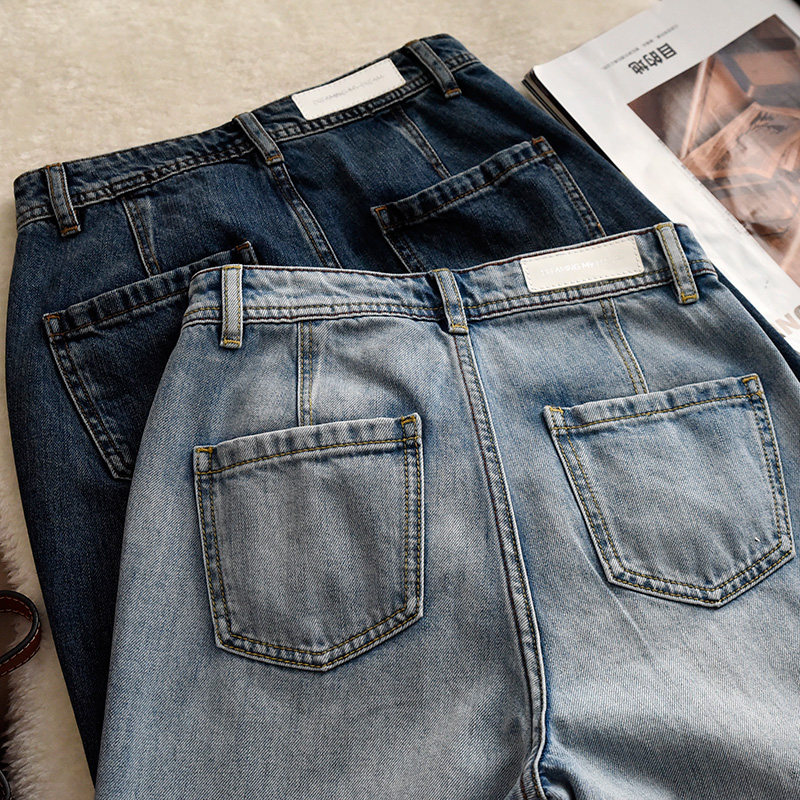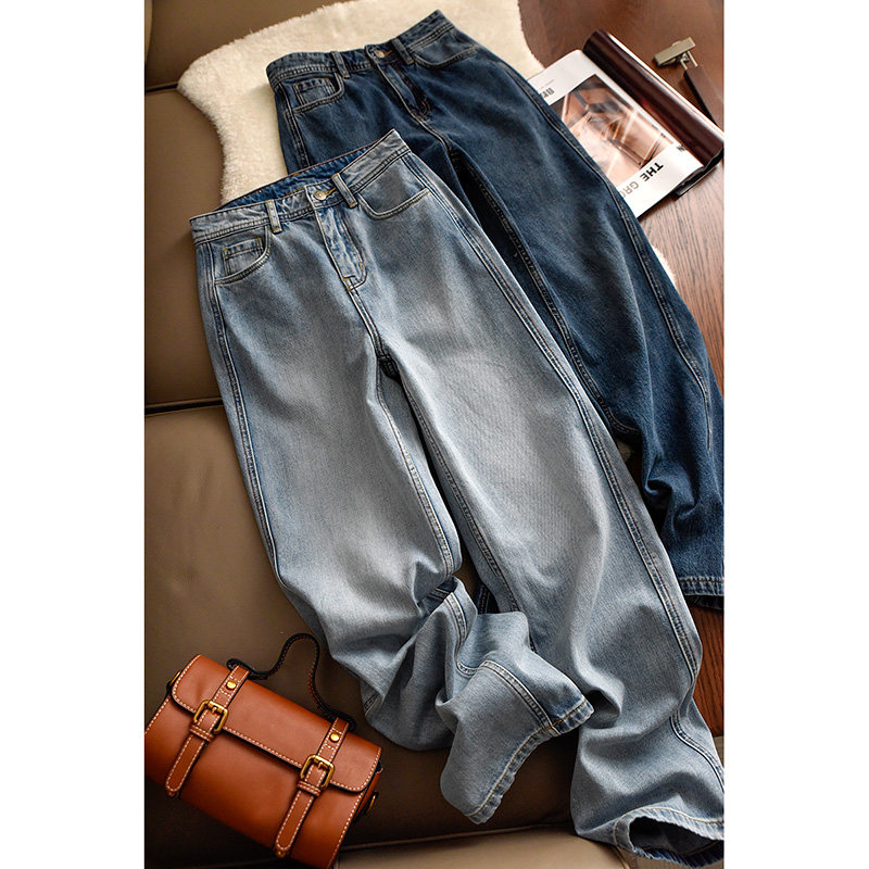 Хлопковые джинсы, штаны, свободный прямой крой