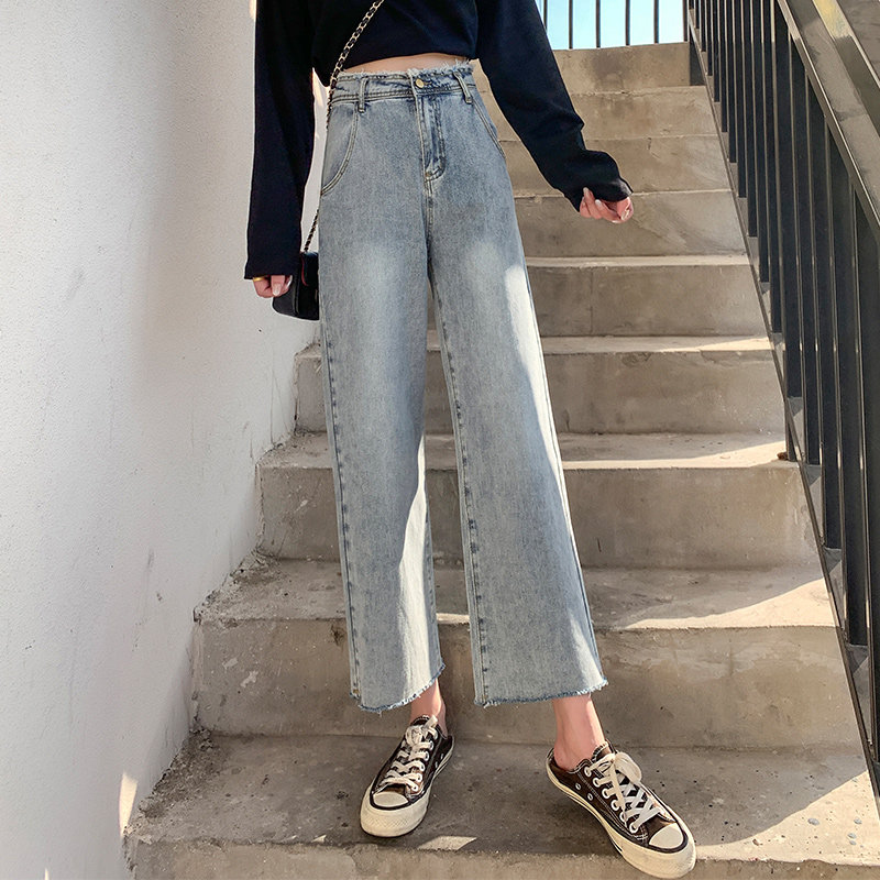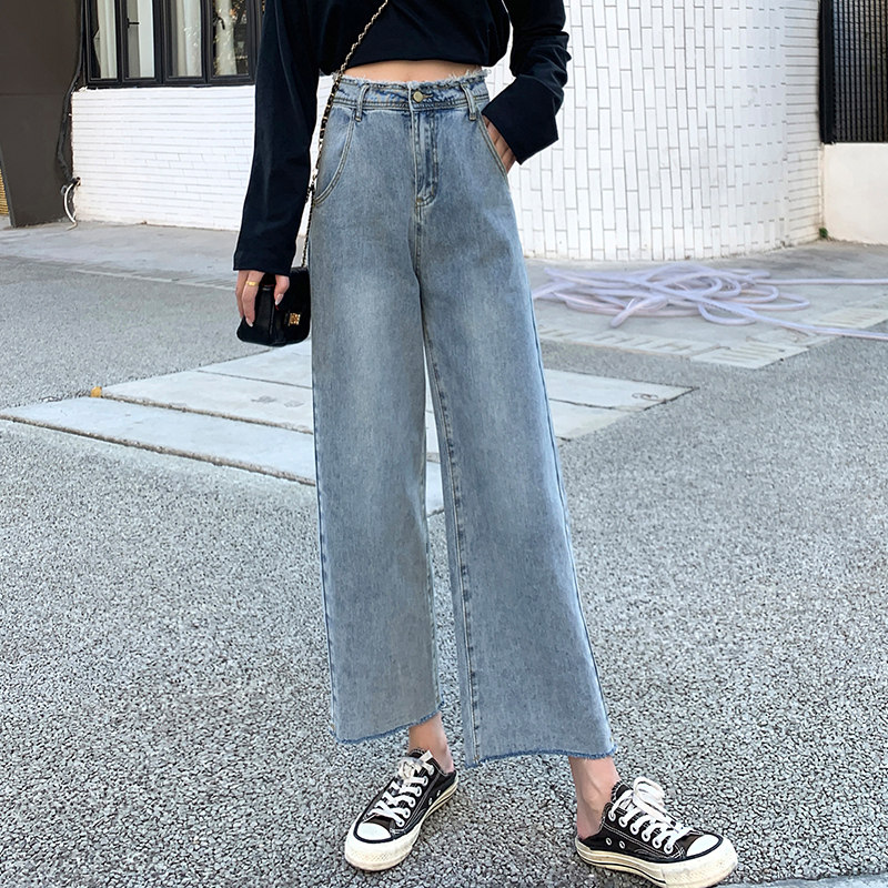Джинсы, приталенные штаны, подходят для подростков, 2021 года, свободный прямой крой, высокая талия