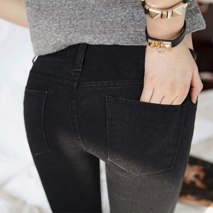Весенние джинсы, летние черные цветные эластичные штаны, в корейском стиле, высокая талия, в обтяжку
