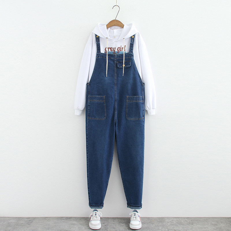 Джинсовый комбинезон, штаны, подходит для полных девушек, в корейском стиле, оверсайз