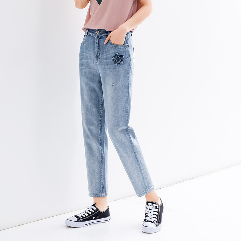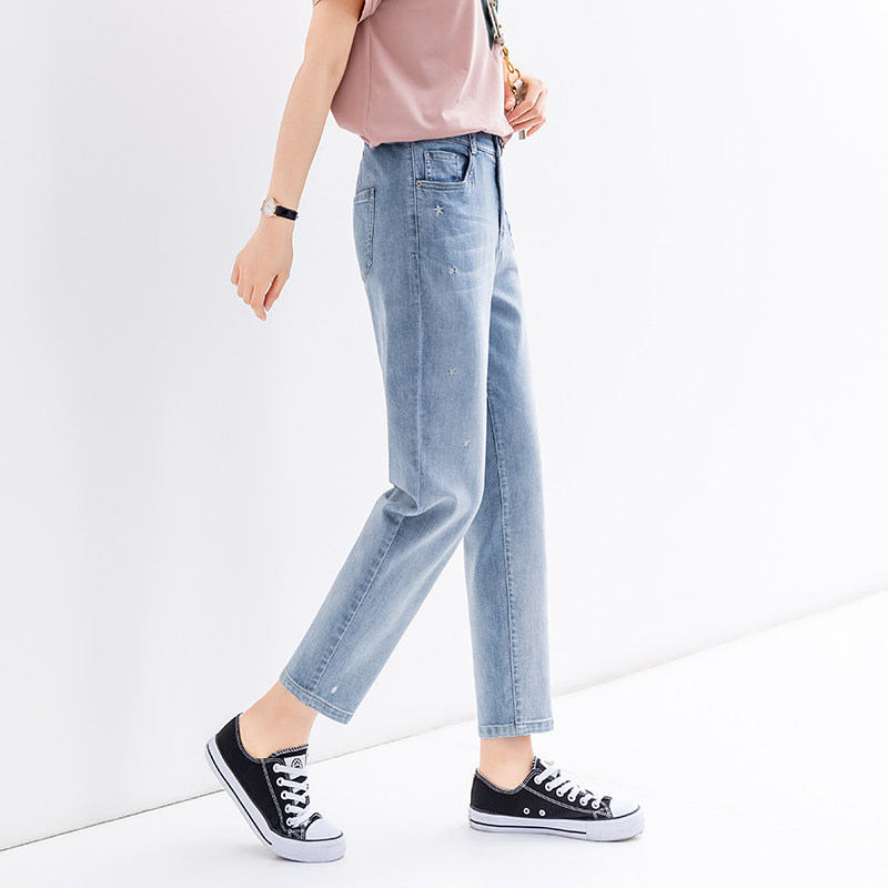 Джинсы, осенние штаны, с вышивкой, коллекция 2022, свободный прямой крой, высокая талия