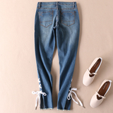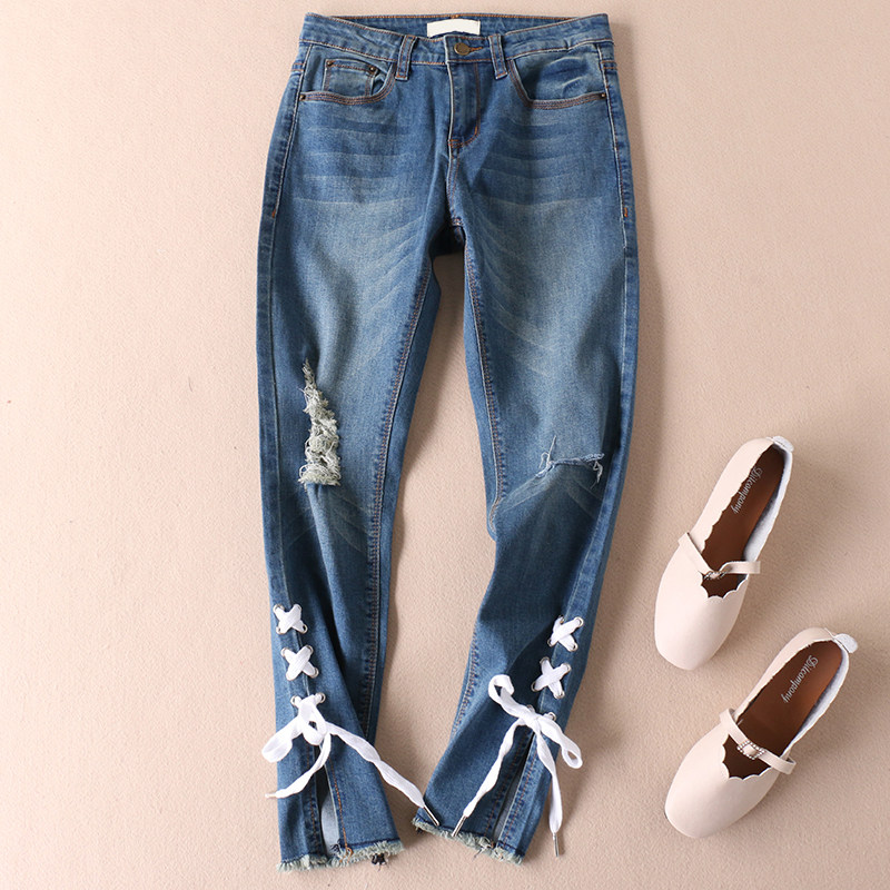 Экспортные брюки по внешней торговле ремнят вода, промывая пещеру весенние маленькие ноги джинсовые брюки женские тонкие тонкие девятисторонние штаны A142