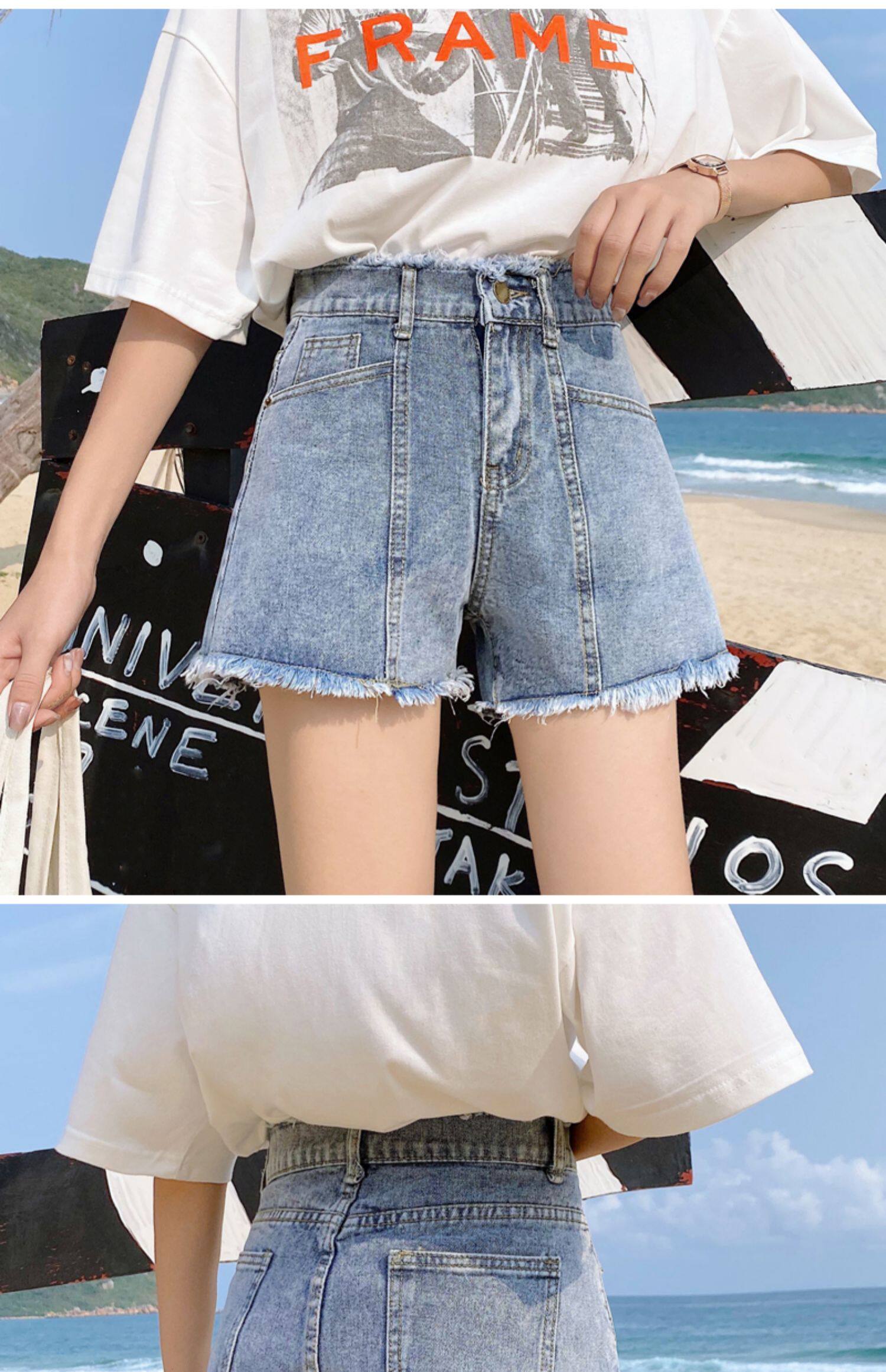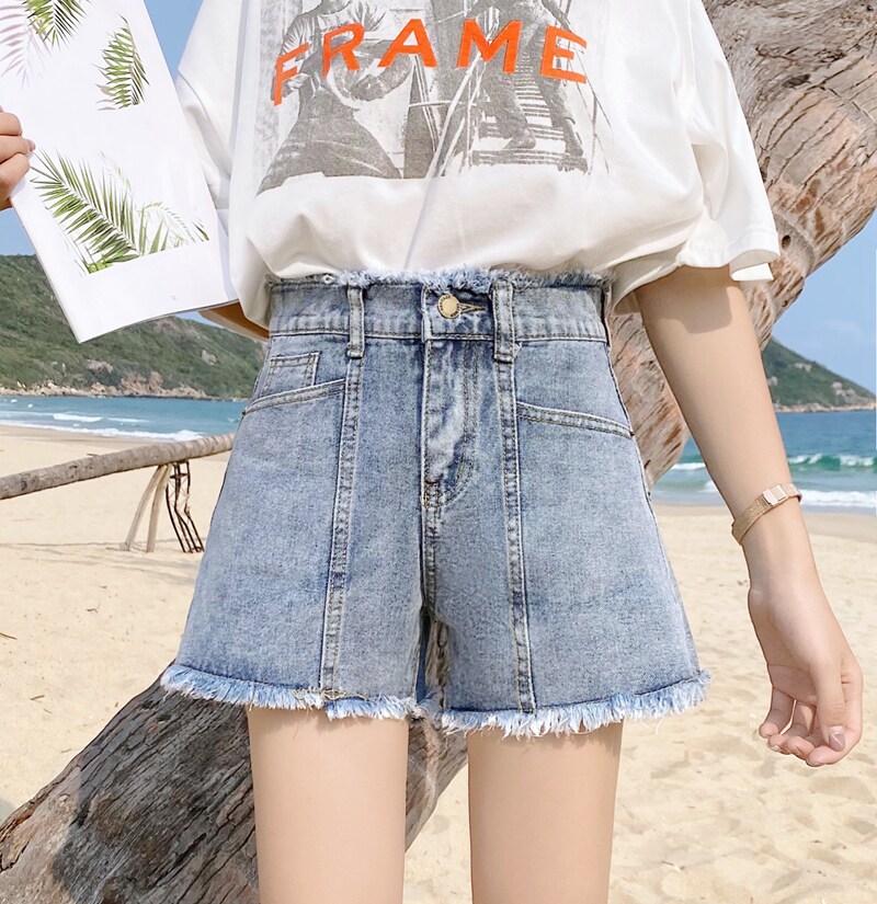 Летние джинсы, штаны, шорты для школьников и студентов, 2020, большой размер, высокая талия, свободный крой, А-силуэт