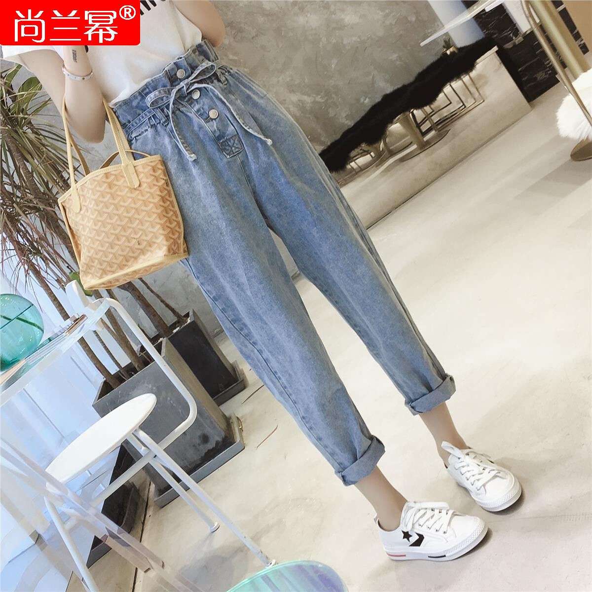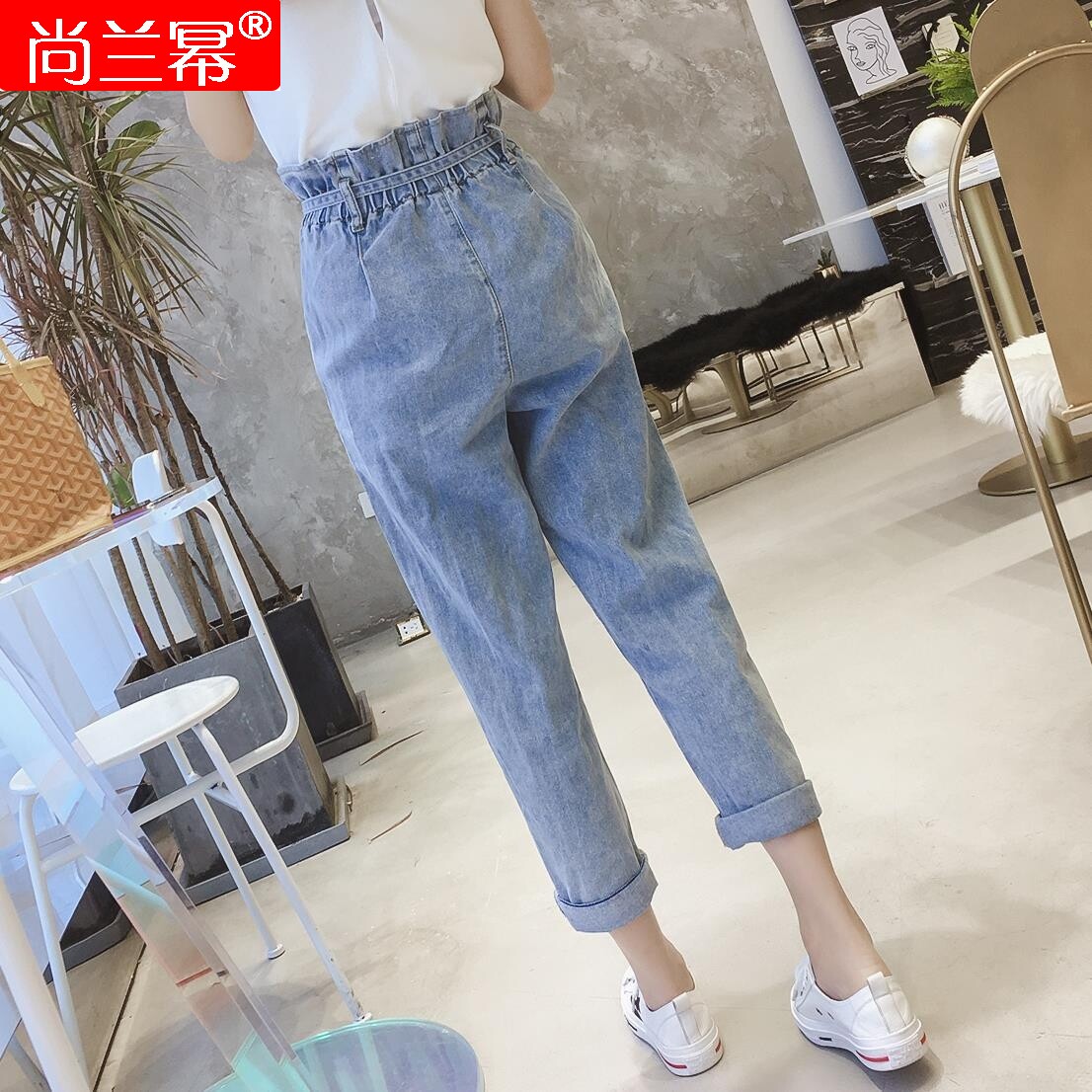 Модные джинсы, штаны, мешочек, в корейском стиле, высокая талия, эластичная талия, подходят для подростков