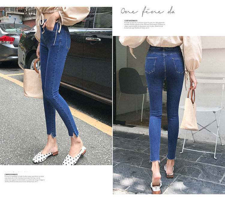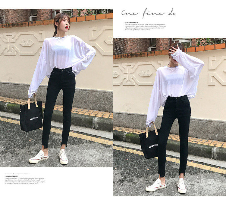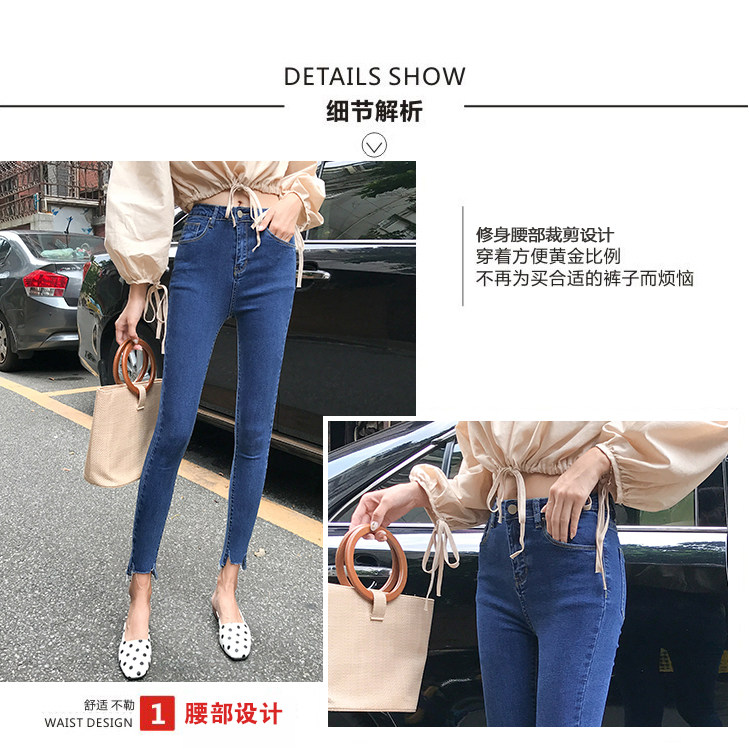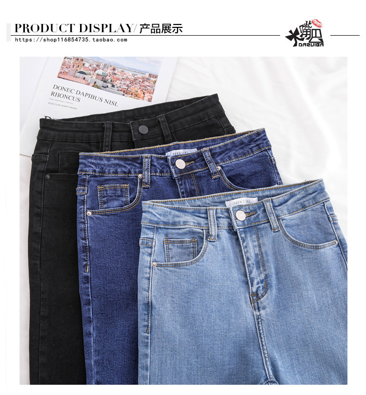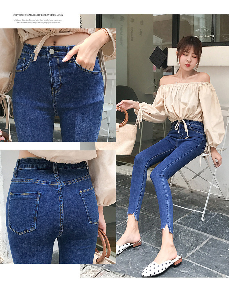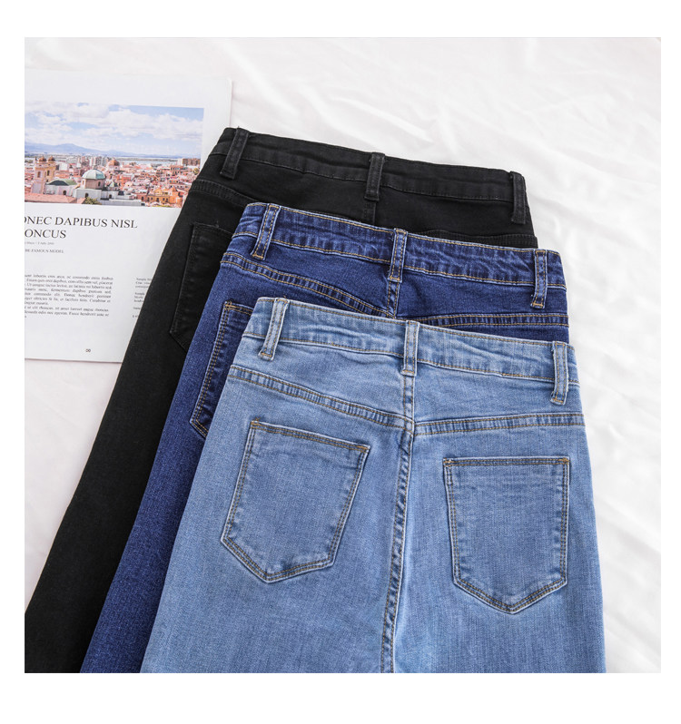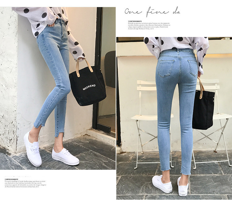 Джинсы, эластичные приталенные светлые штаны, высокая талия, в корейском стиле