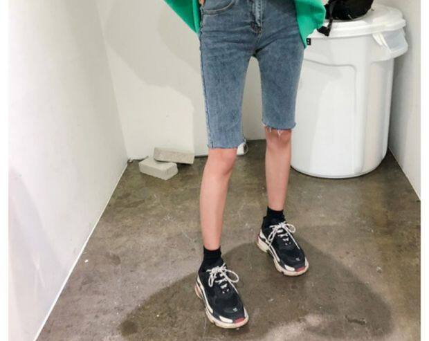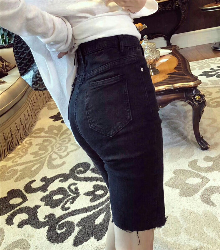 Черная джинсовая юбка, шорты, тонкие эластичные штаны, большой размер, высокая талия, в обтяжку, по фигуре