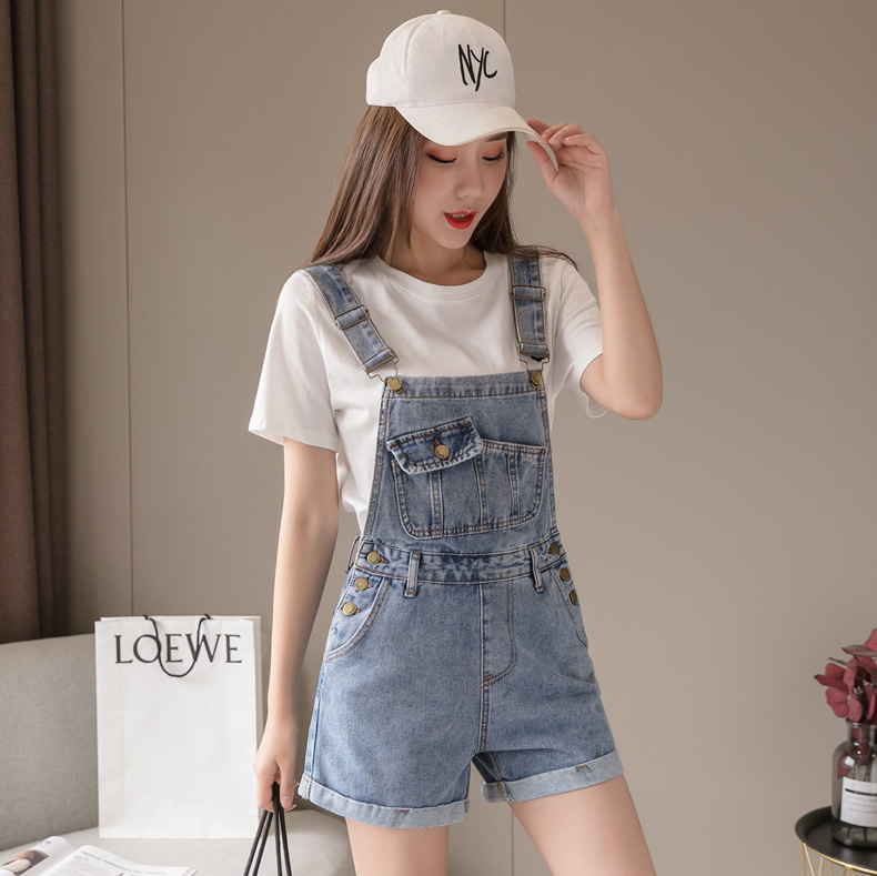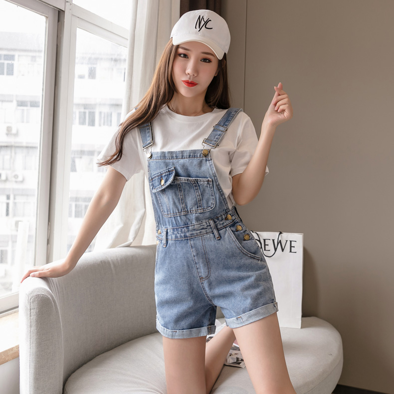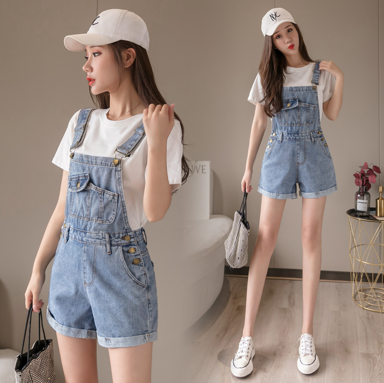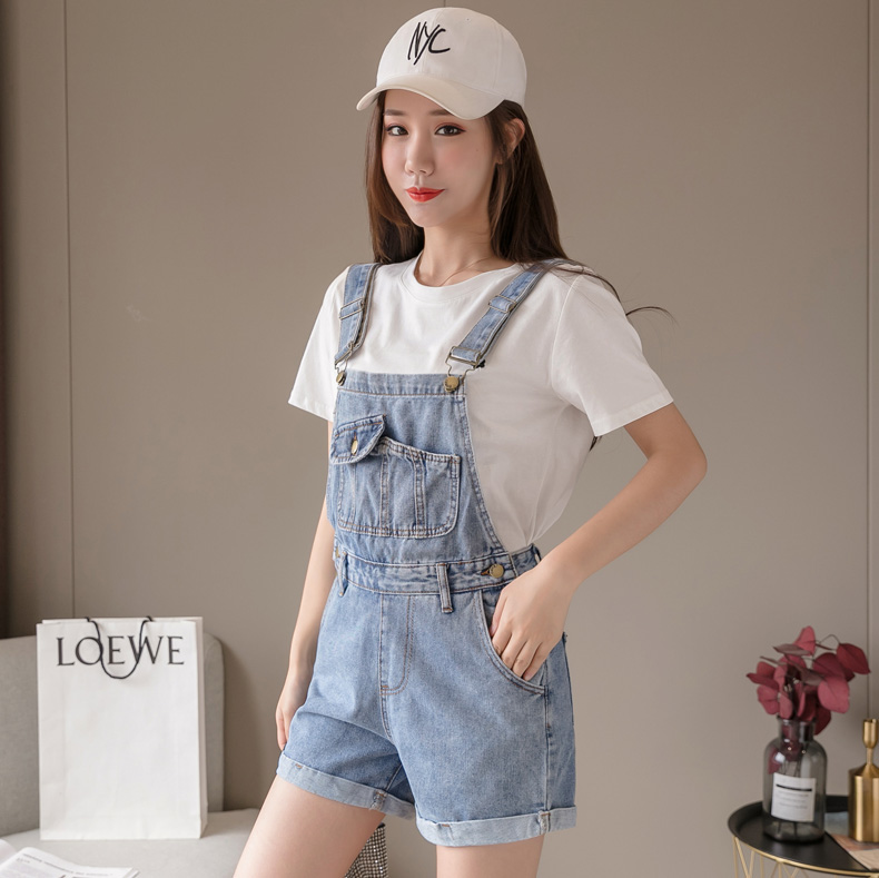 Джинсовые подтяжки, шорты, летние штаны, комбинезон, высокая талия, свободный прямой крой