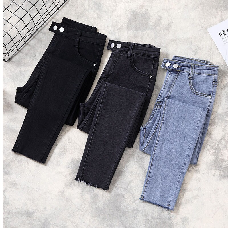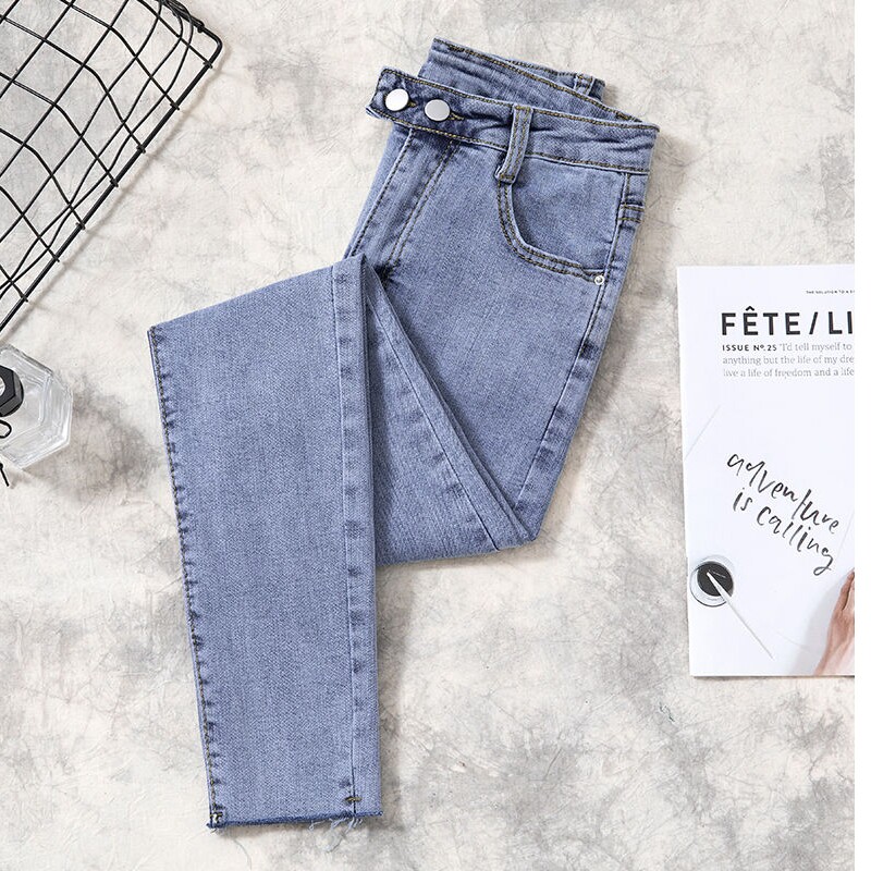 Джинсы, приталенные эластичные штаны, 2020, высокая талия, большой размер