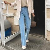 Джинсы, весенние приталенные штаны, свободный прямой крой, 2021 года, высокая талия, подходят для подростков