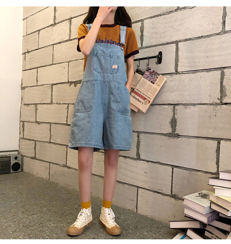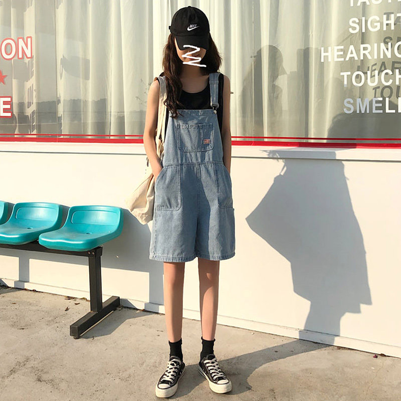 Джинсовые подтяжки, шорты, летний комбинезон, штаны, подходит для подростков, 150см, 2021 года, в корейском стиле