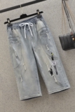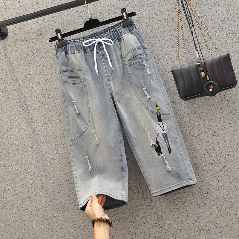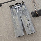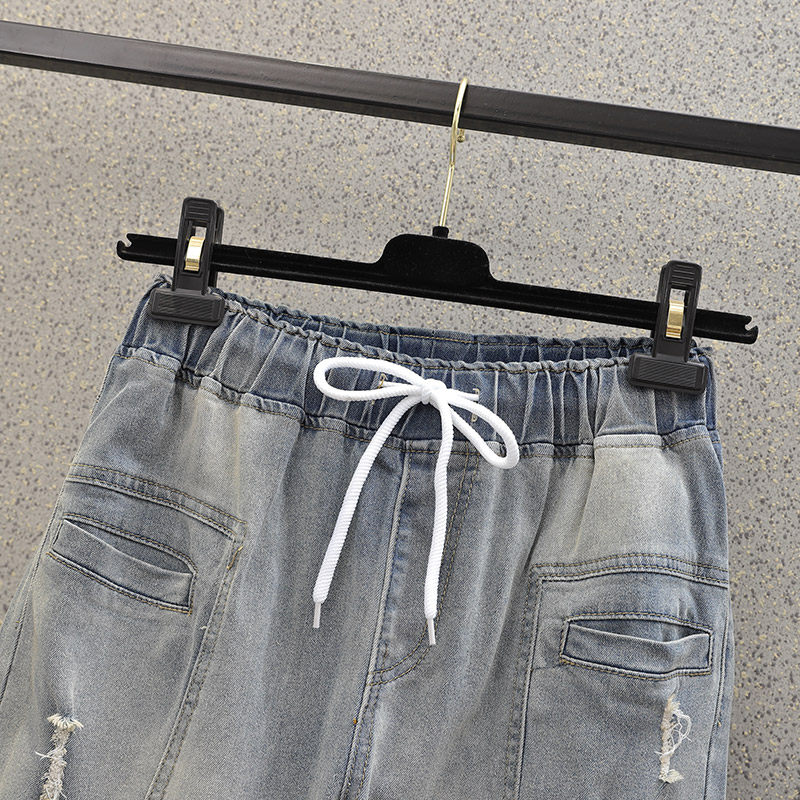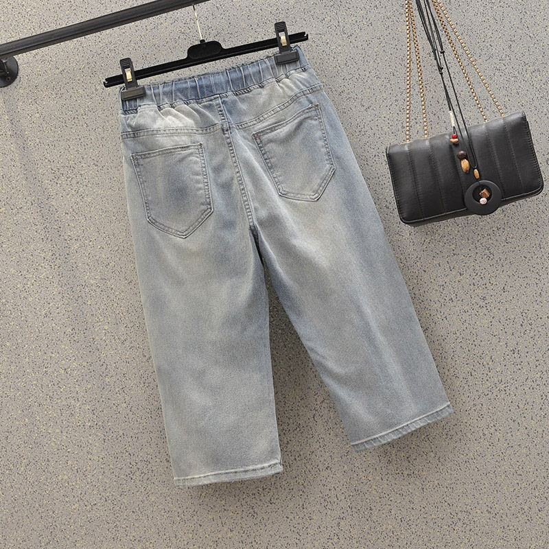 Джинсы, эластичные штаны, большой размер, подходит для полных девушек, высокая талия