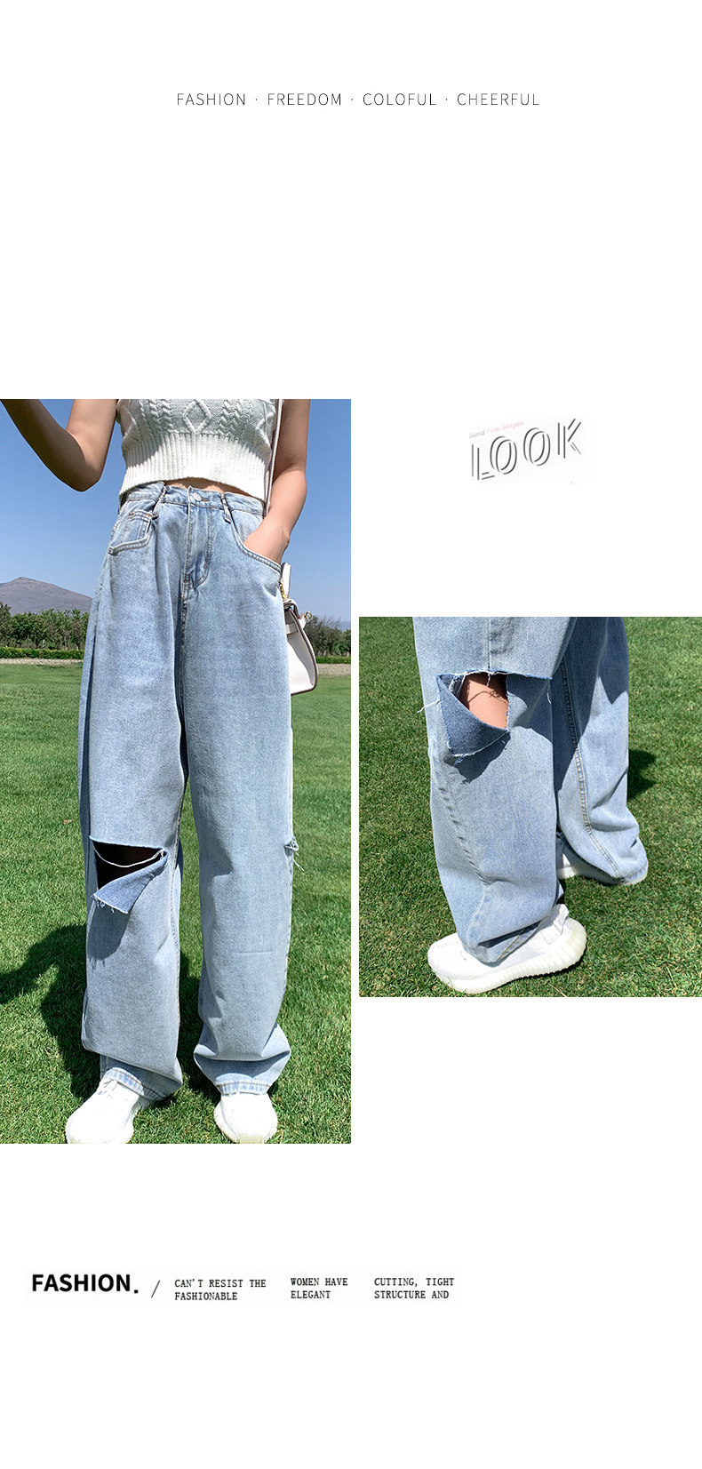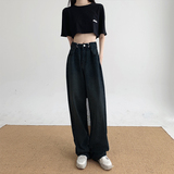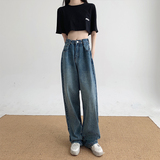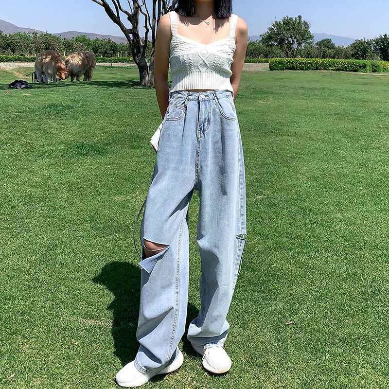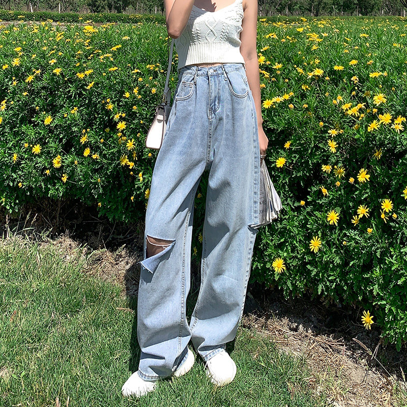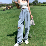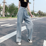 Летние джинсы, штаны, высокая талия, по фигуре, свободный прямой крой
