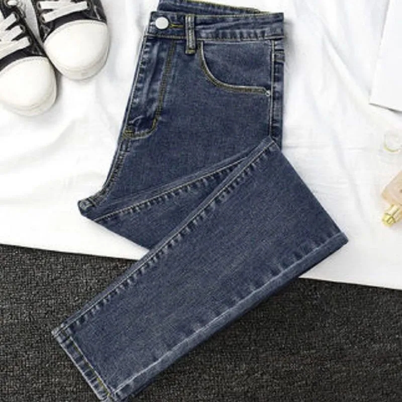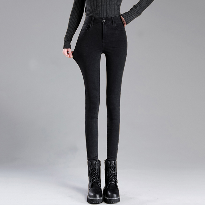 Джинсы с начесом, эластичные осенние демисезонные штаны, удерживающий тепло карандаш, высокая талия, в обтяжку