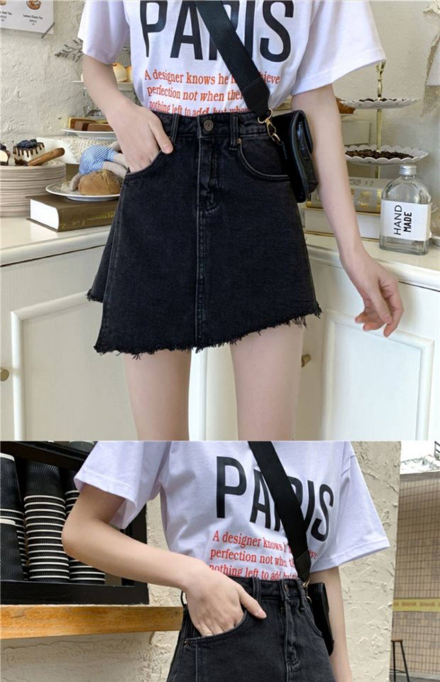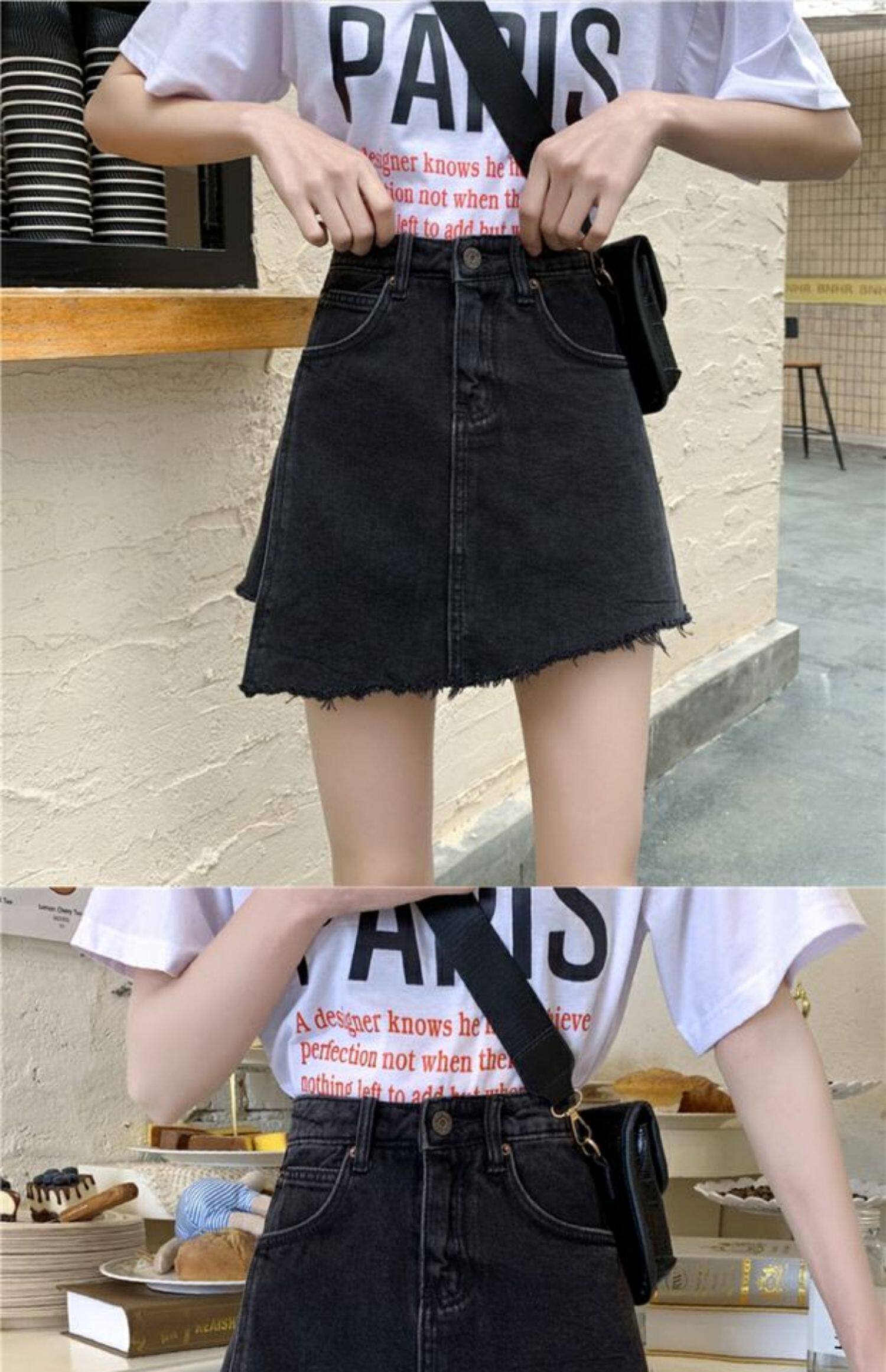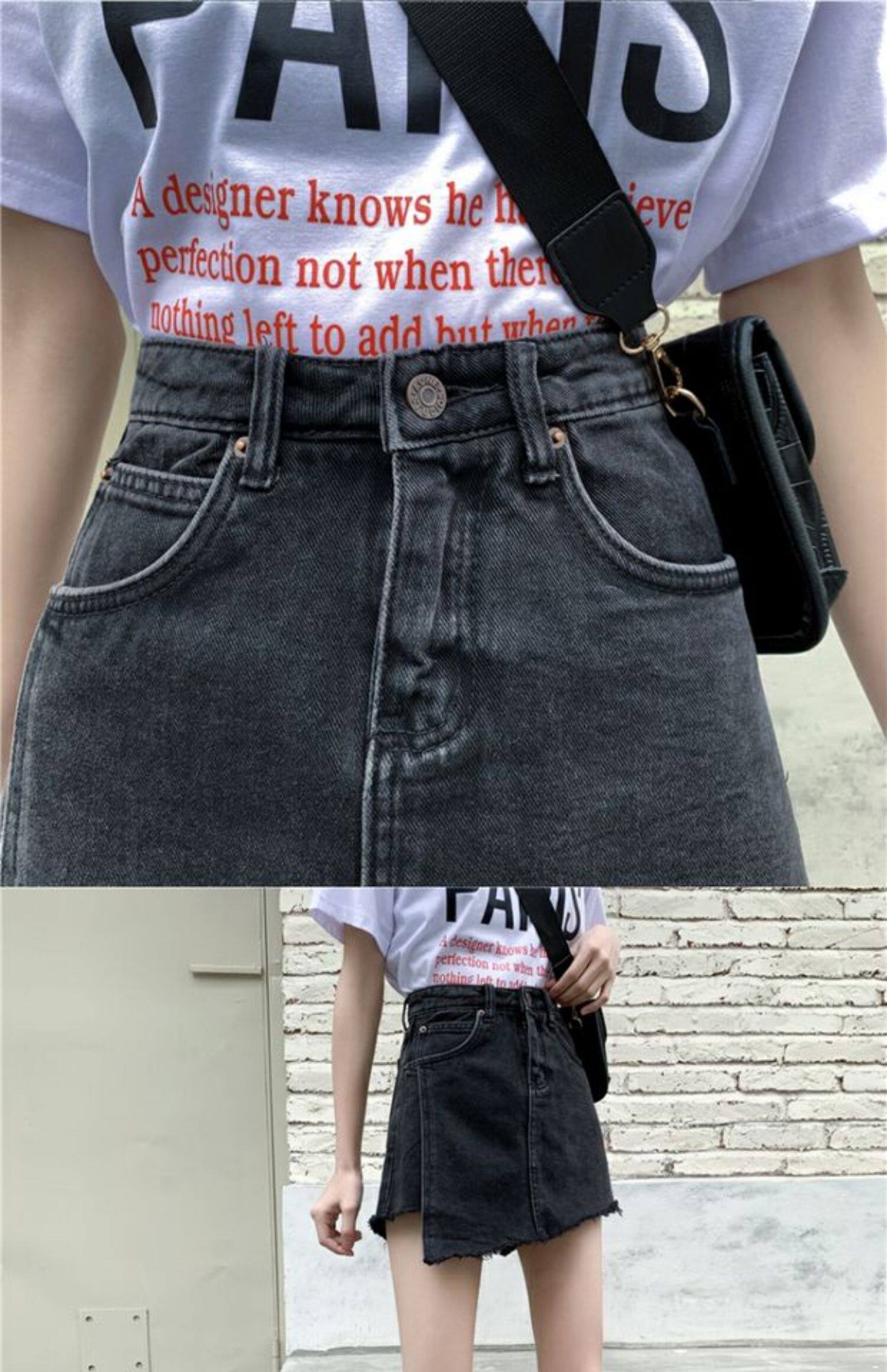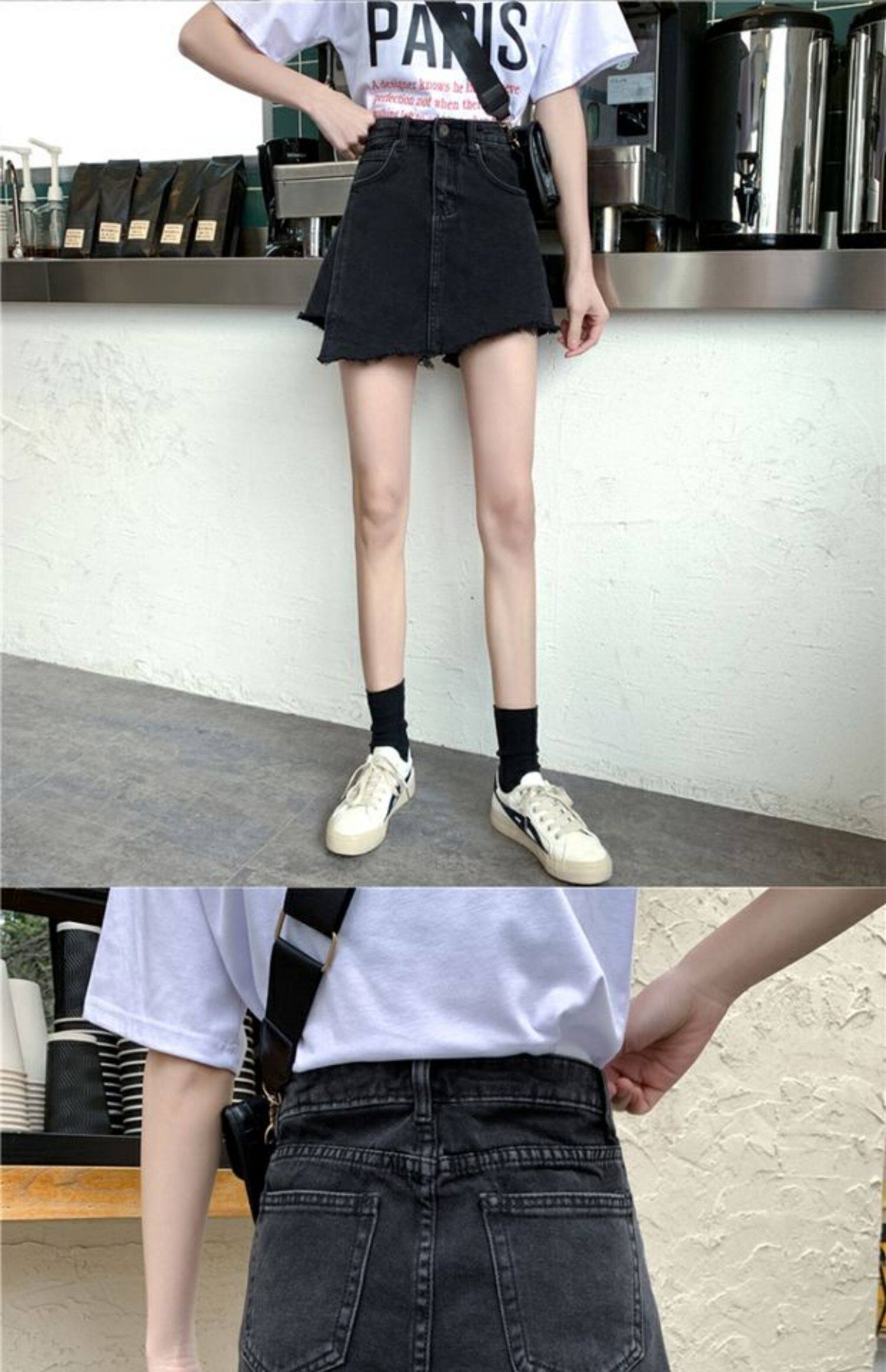 Летняя джинсовая юбка, шорты, штаны, в корейском стиле, большой размер, высокая талия, свободный крой, А-силуэт