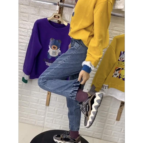 Джинсы, штаны, 2020, высокая талия, свободный прямой крой, по фигуре