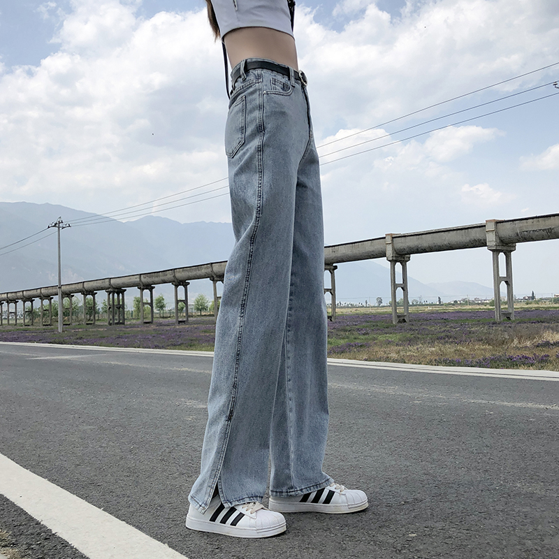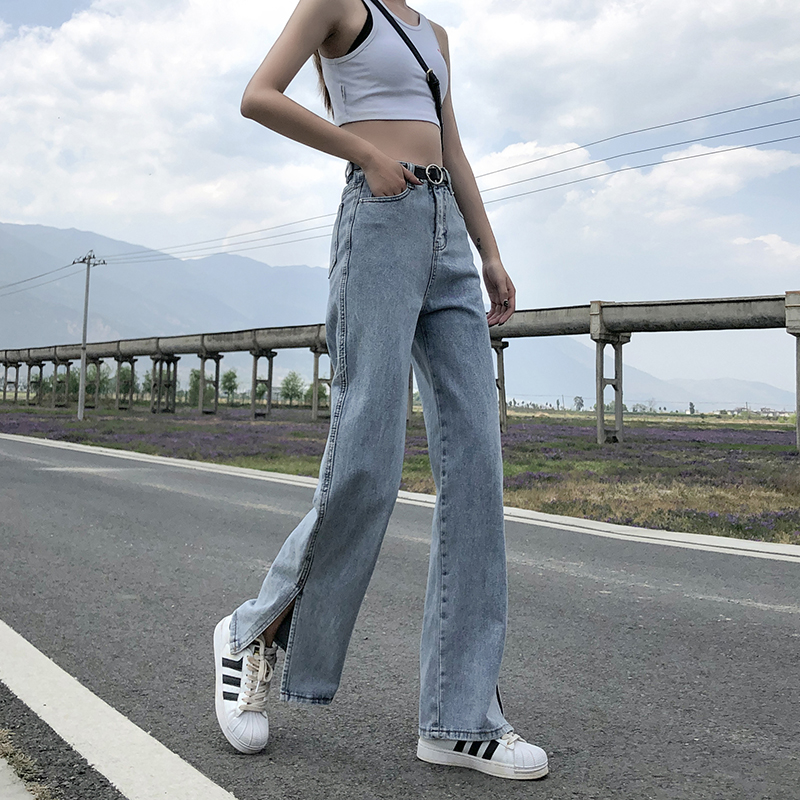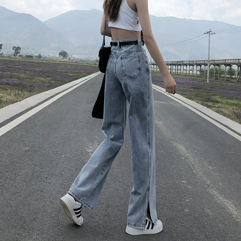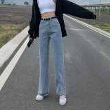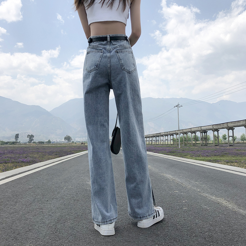 Джинсовые весенние приталенные джинсы, штаны, высокая талия, подходит для подростков, свободный прямой крой