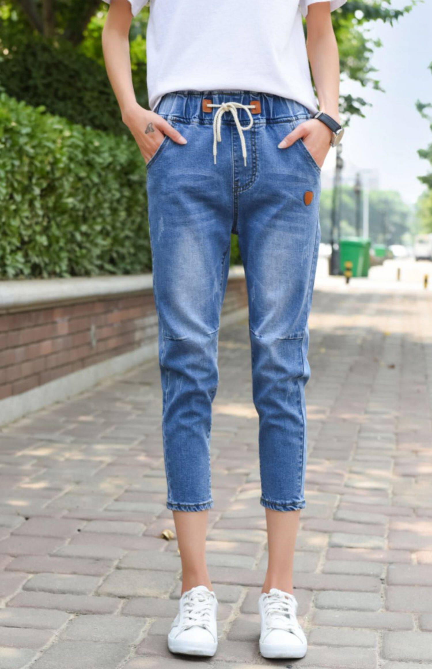Джинсовые летние тонкие штаны, коллекция 2023, высокая талия, свободный крой, большой размер