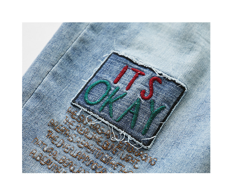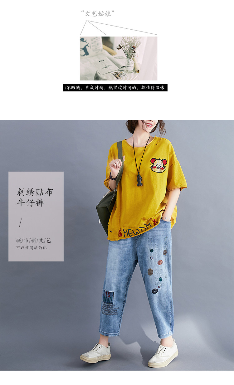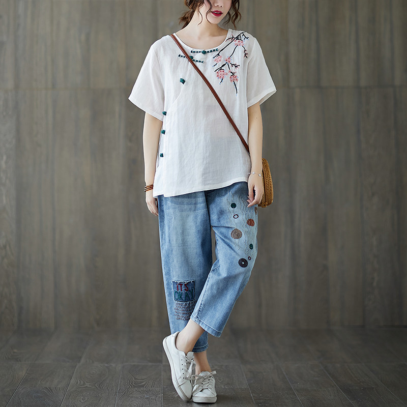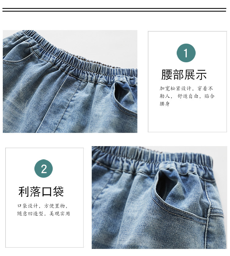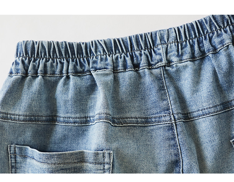 Летние штаны, джинсы, большой размер, высокая талия, с вышивкой