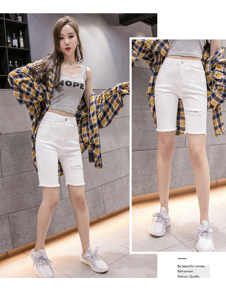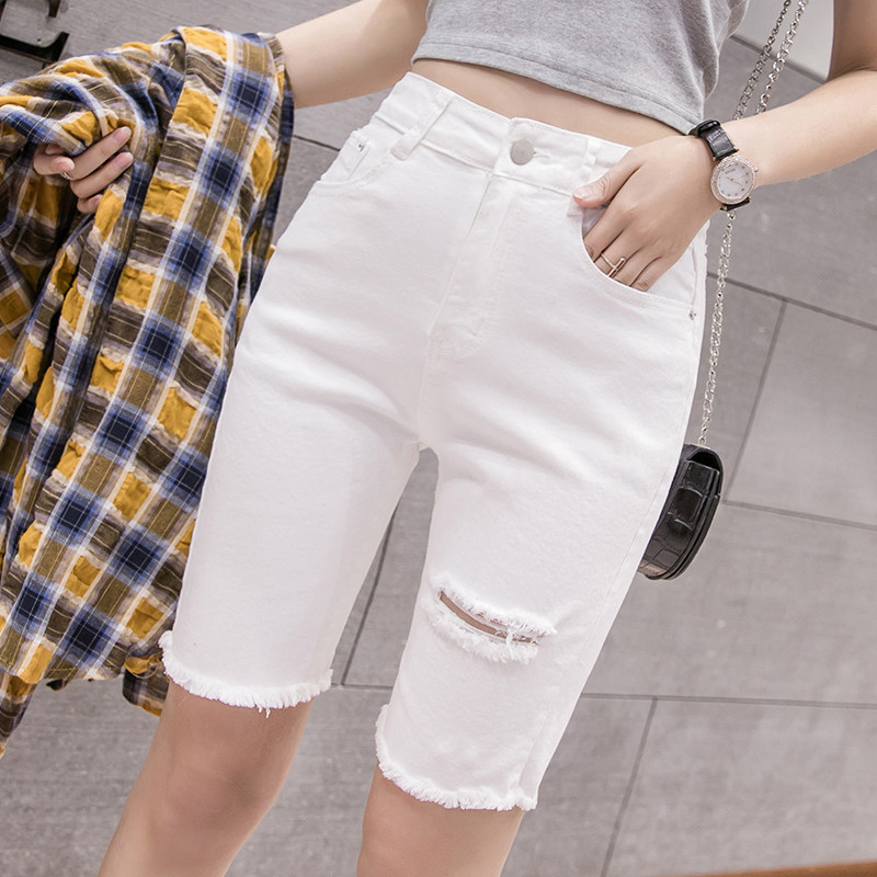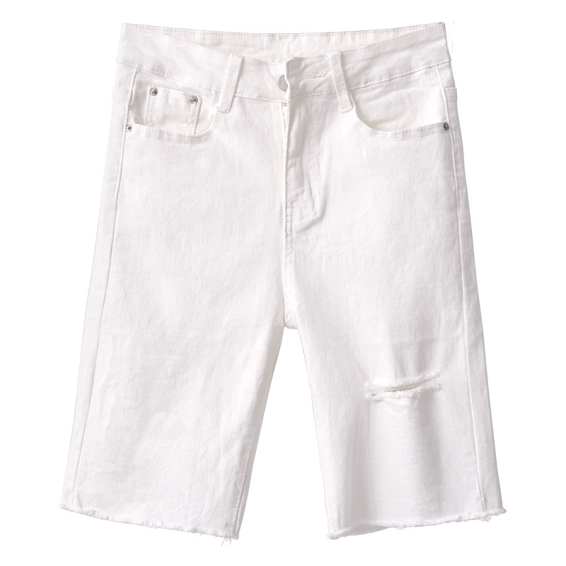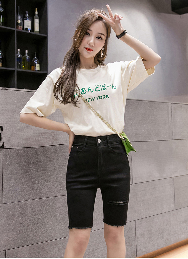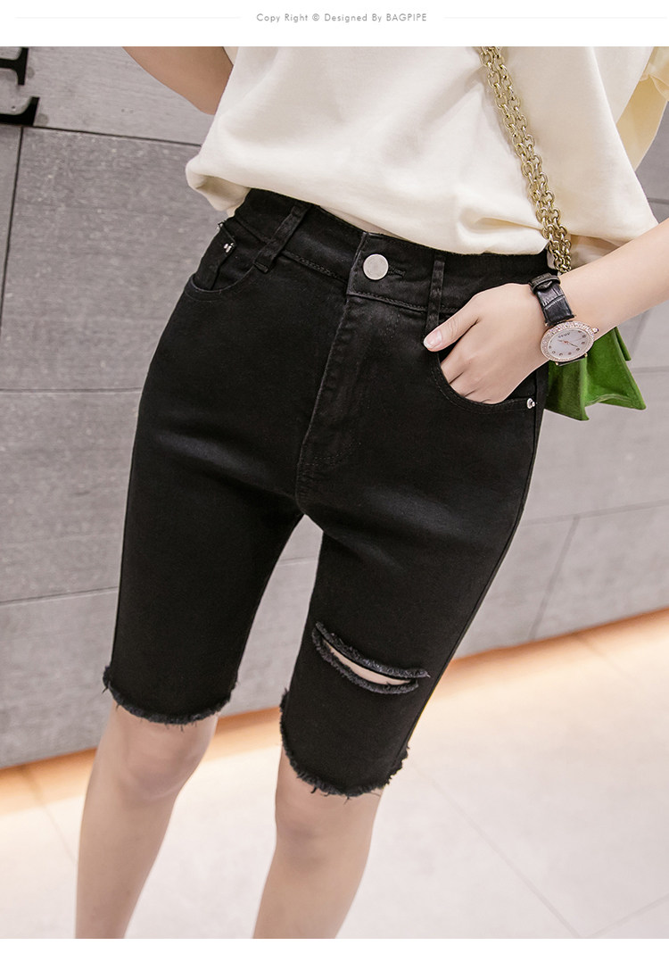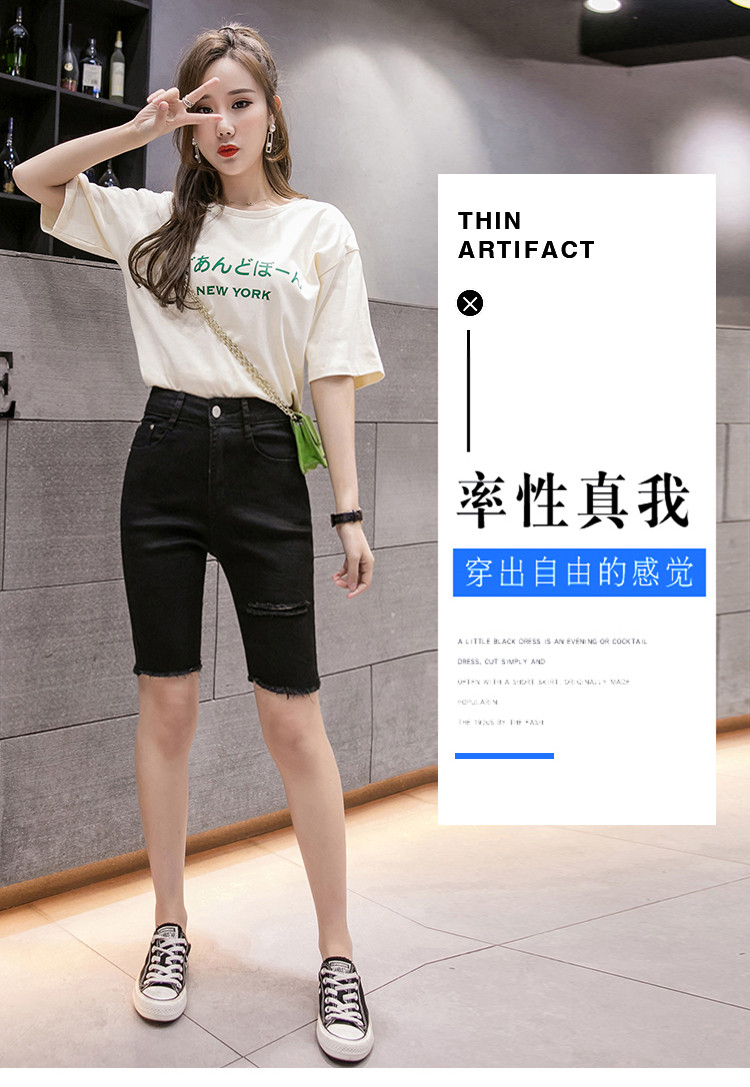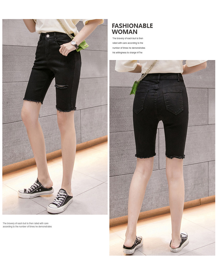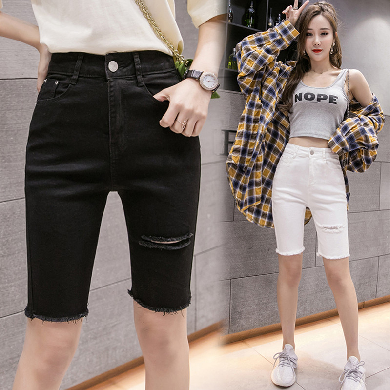 Эластичные черные джинсовые весенние летние штаны, шорты, популярно в интернете, высокая талия, в обтяжку, по фигуре