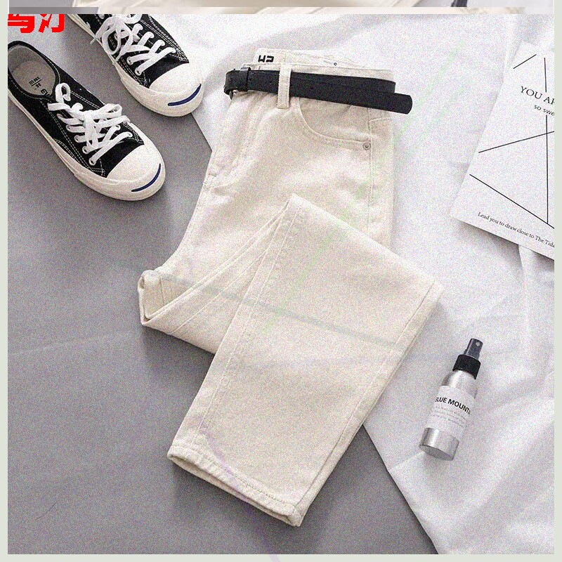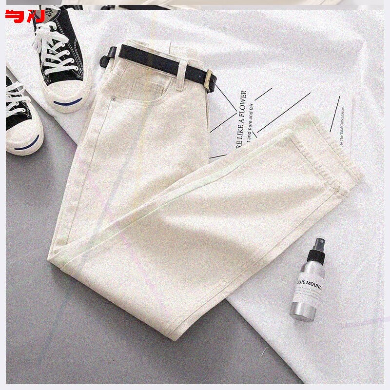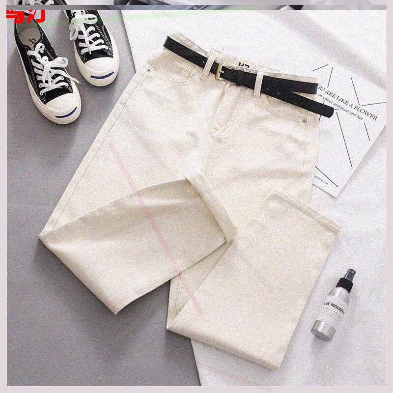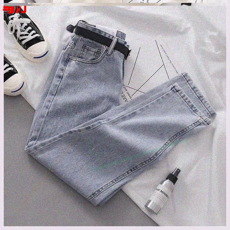 Джинсовые осенние штаны, ремень, высокая талия, 2020, свободный прямой крой