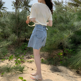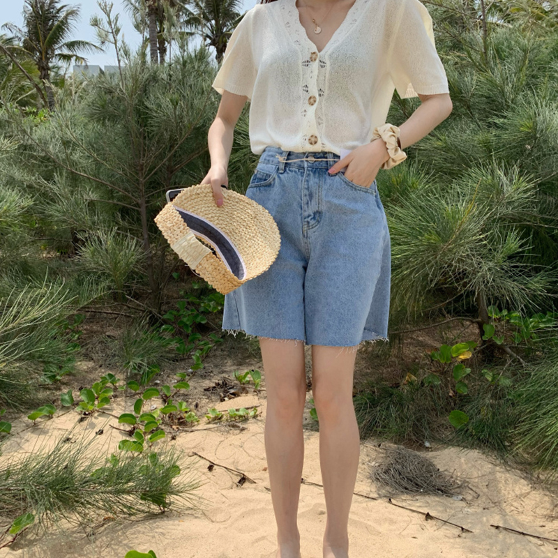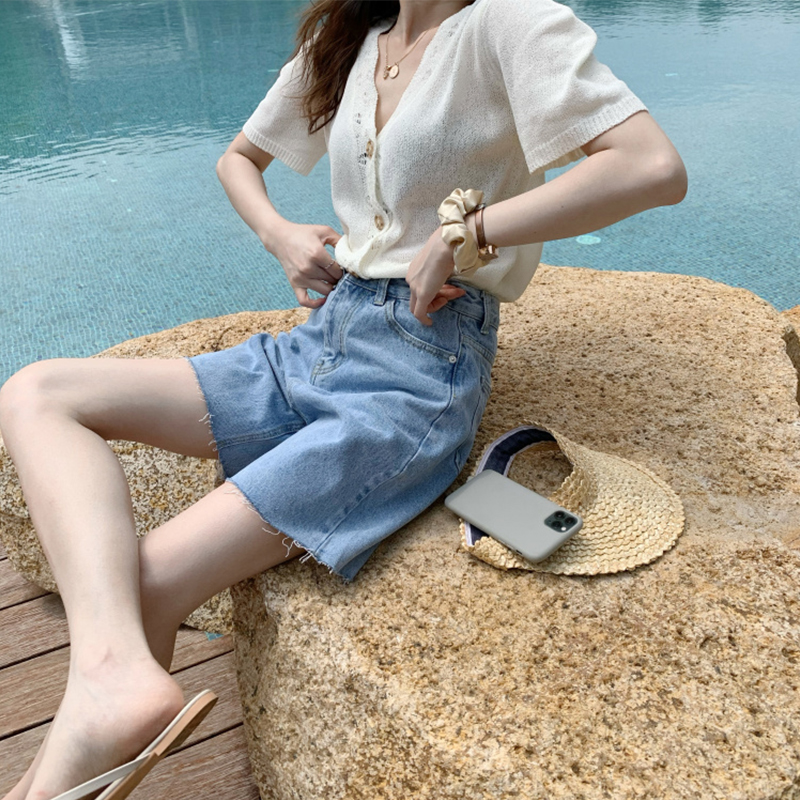 Tide, шорты, летние приталенные штаны для школьников, джинсы, в корейском стиле, высокая талия, свободный прямой крой