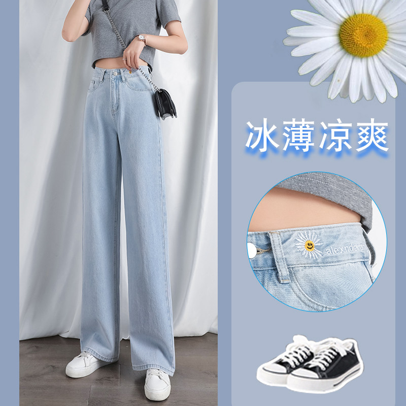 Джинсы, летние тонкие шелковые штаны, сезон 2021, оверсайз, высокая талия, подходят для подростков, свободный прямой крой