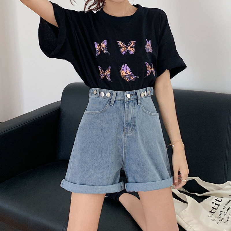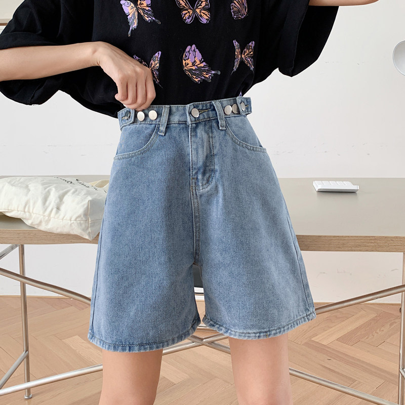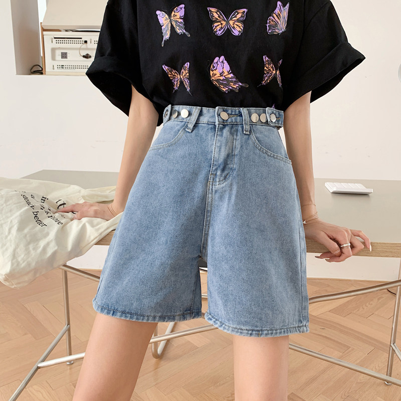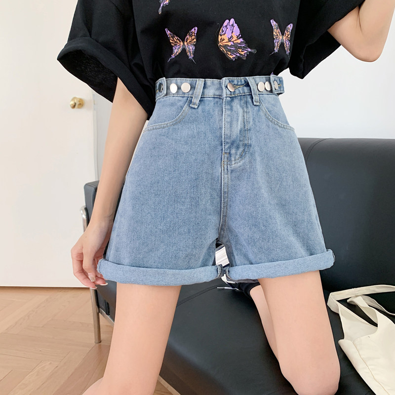 Летние тонкие приталенные джинсовые штаны, шорты, высокая талия, большой размер, в корейском стиле, свободный крой
