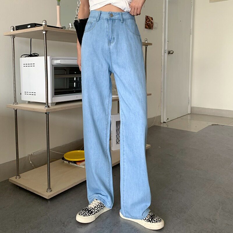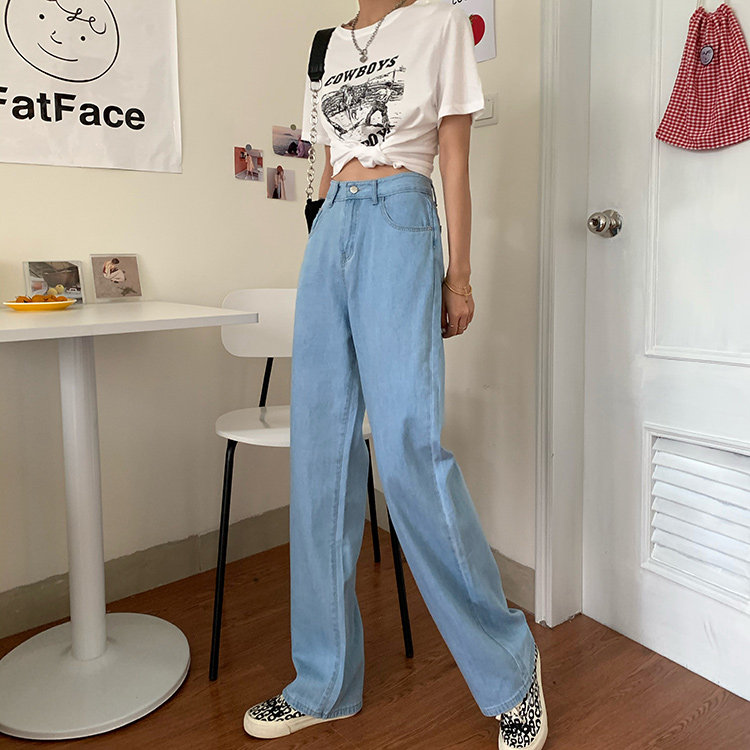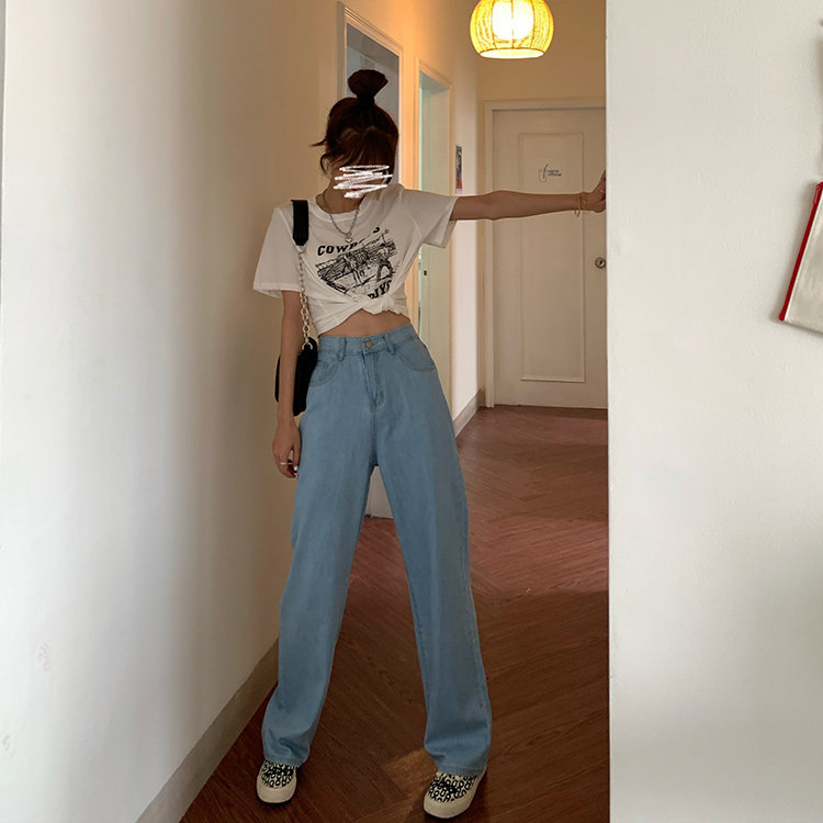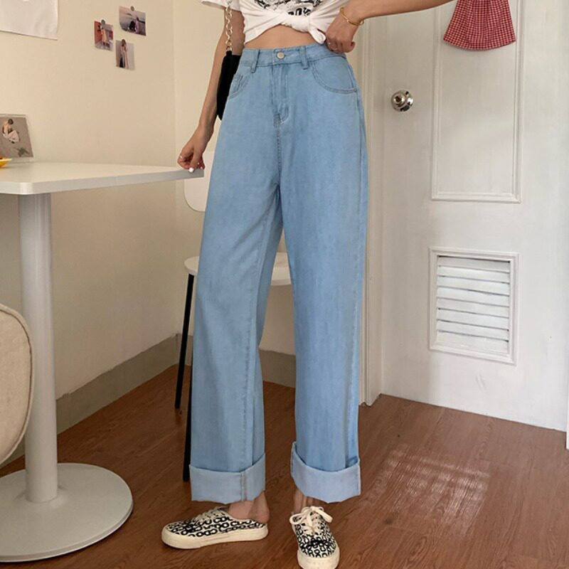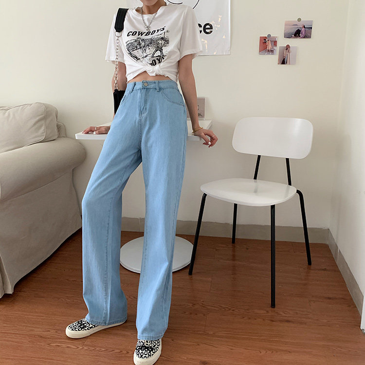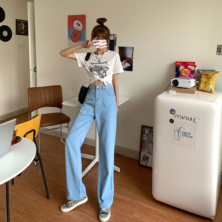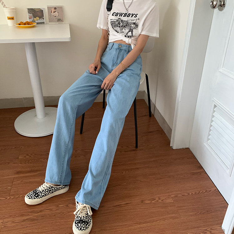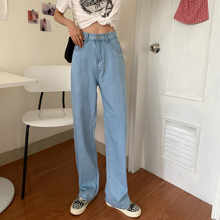 Светлые цветные весенние джинсы, штаны, высокая талия, коллекция 2023, в корейском стиле, свободный прямой крой, по фигуре