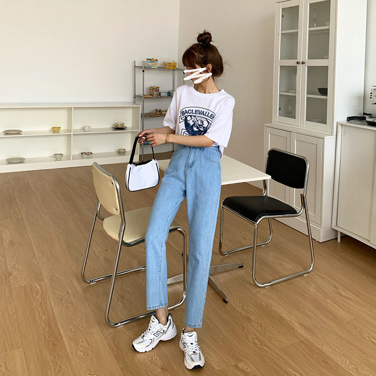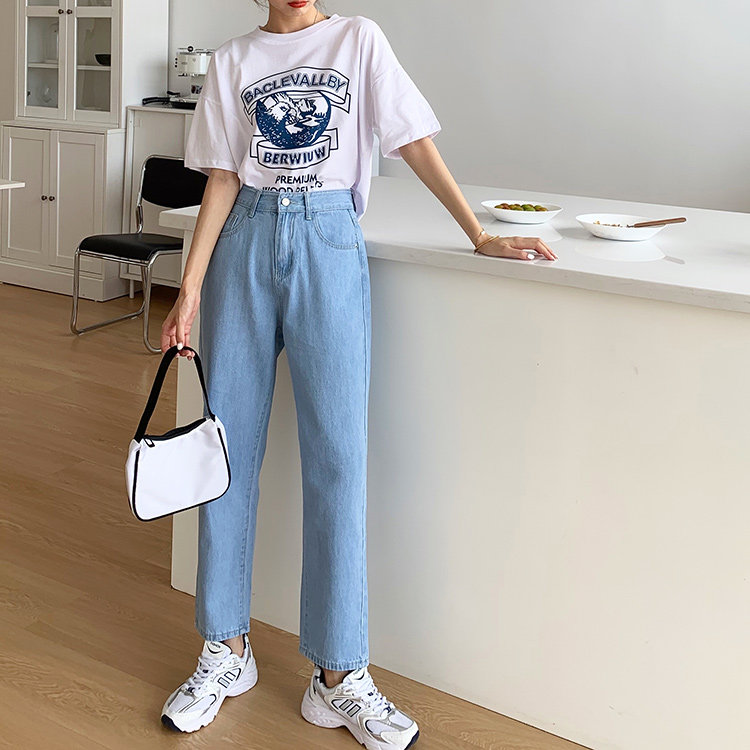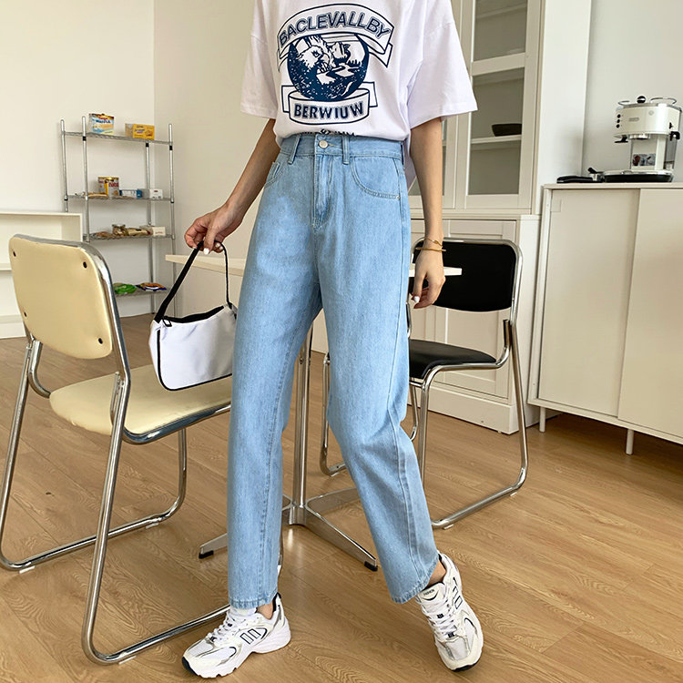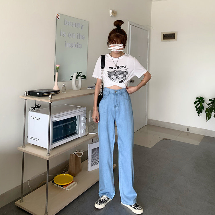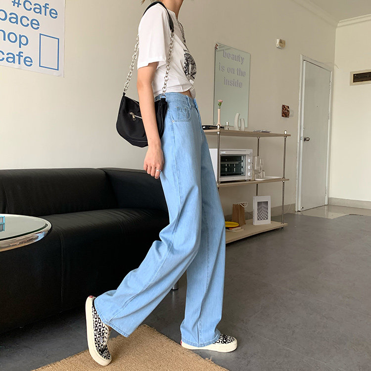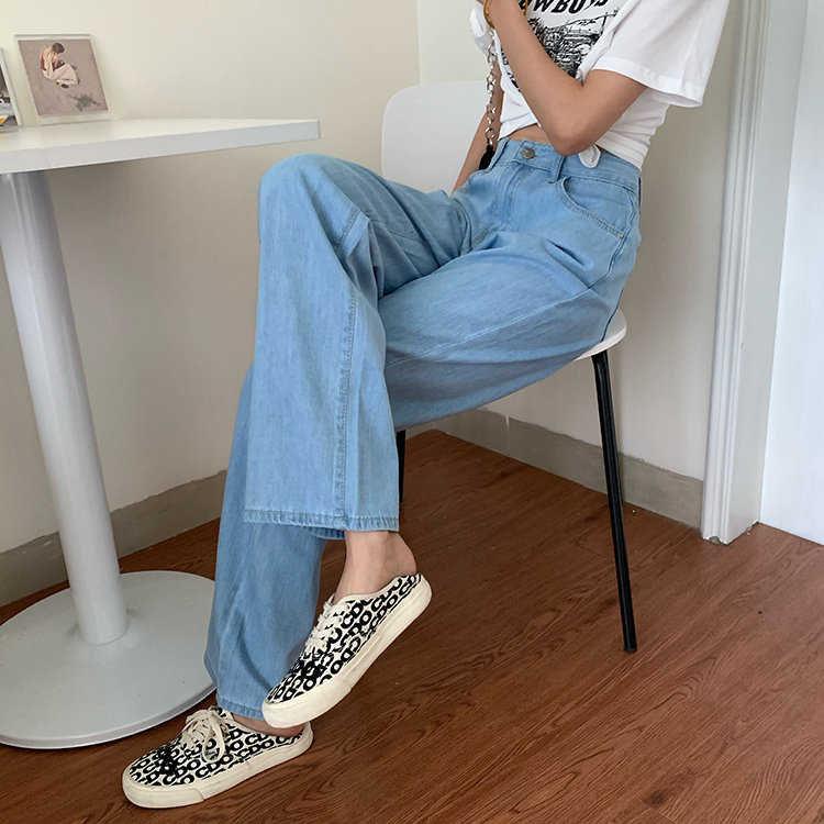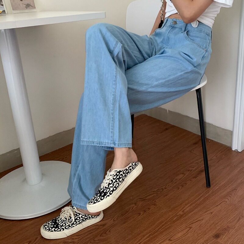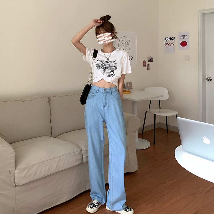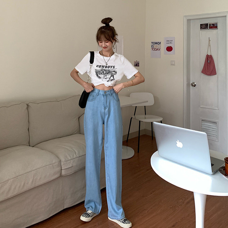 Светлые цветные весенние джинсы, штаны, высокая талия, коллекция 2023, в корейском стиле, свободный прямой крой, по фигуре
