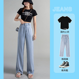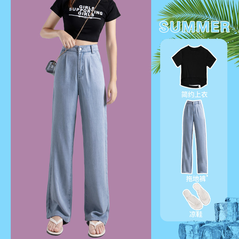 Штаны, тонкие приталенные шелковые джинсы, свободный прямой крой, высокая талия, подходит для подростков