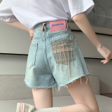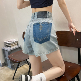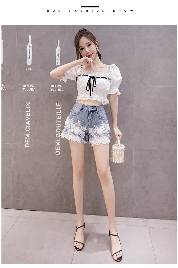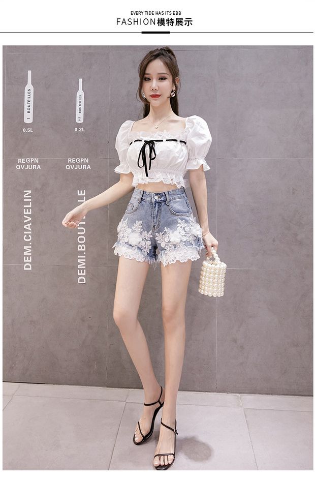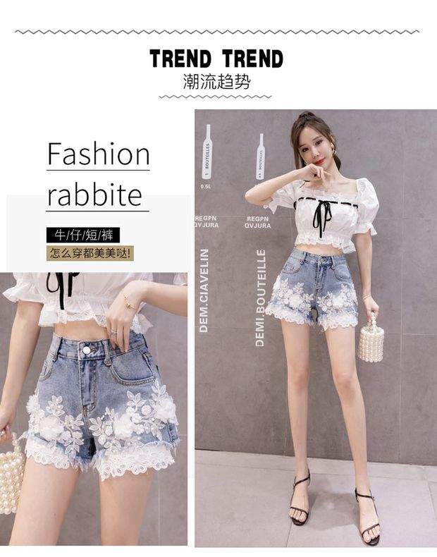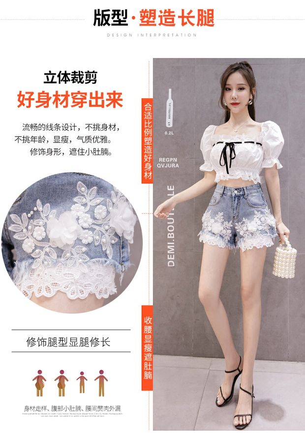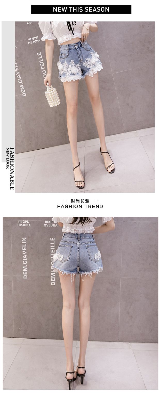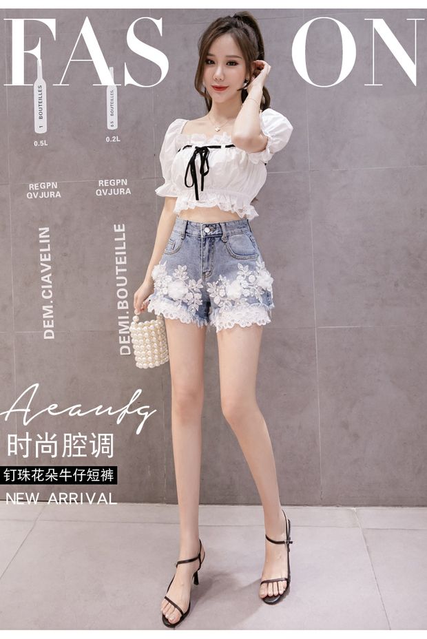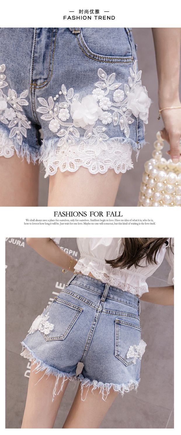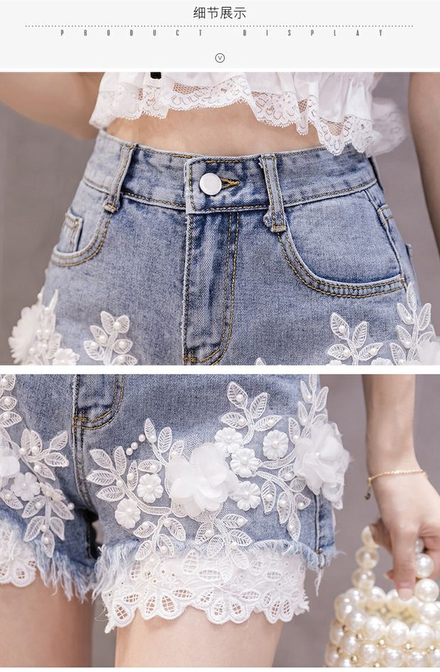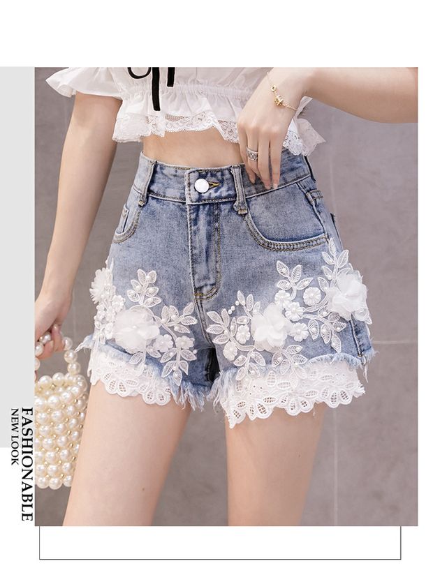 Джинсовая юбка, шорты, штаны, европейский стиль, высокая талия, с вышивкой, в цветочек, оверсайз, свободный крой, А-силуэт