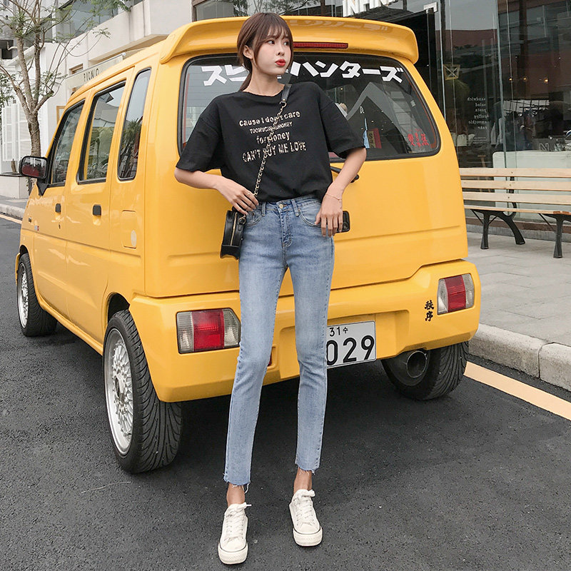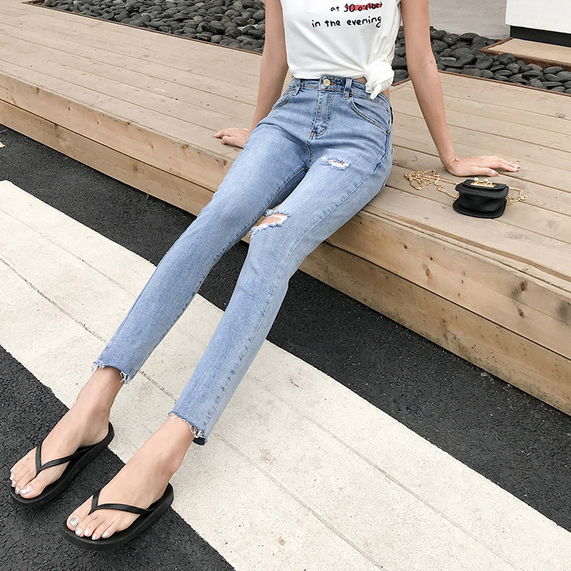 Летние светлые джинсы, приталенные тонкие штаны, в корейском стиле