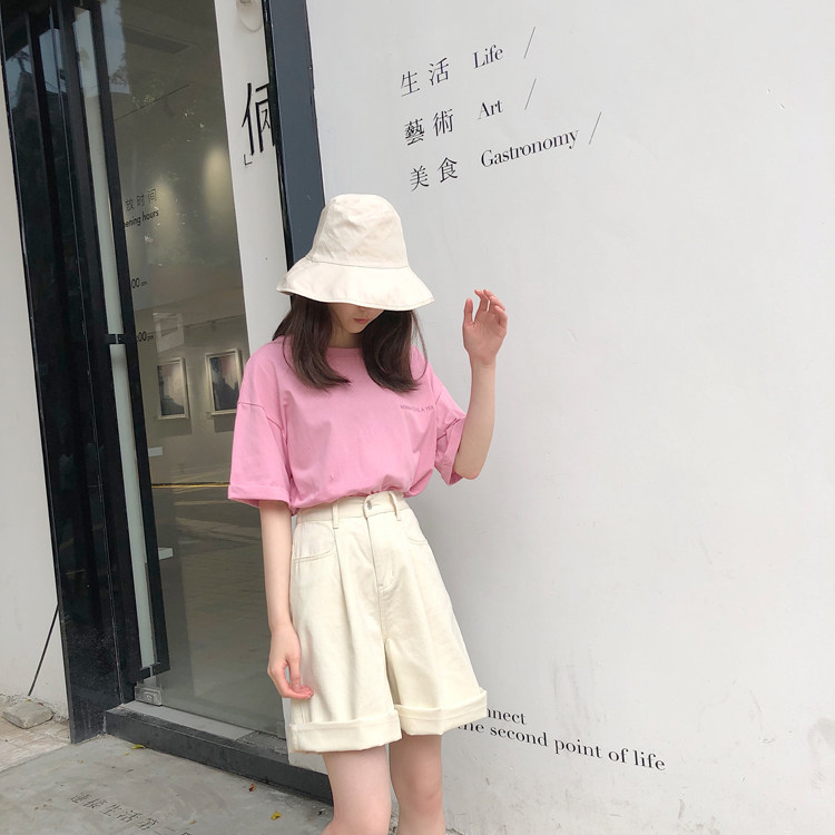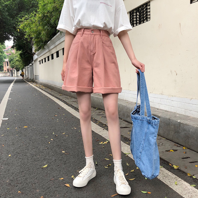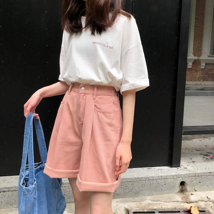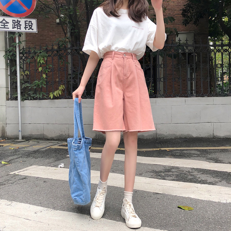 Tide, розовая джинсовая юбка, летние шорты, приталенные штаны, высокая талия, свободный прямой крой