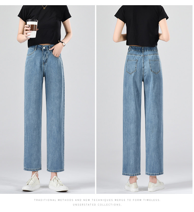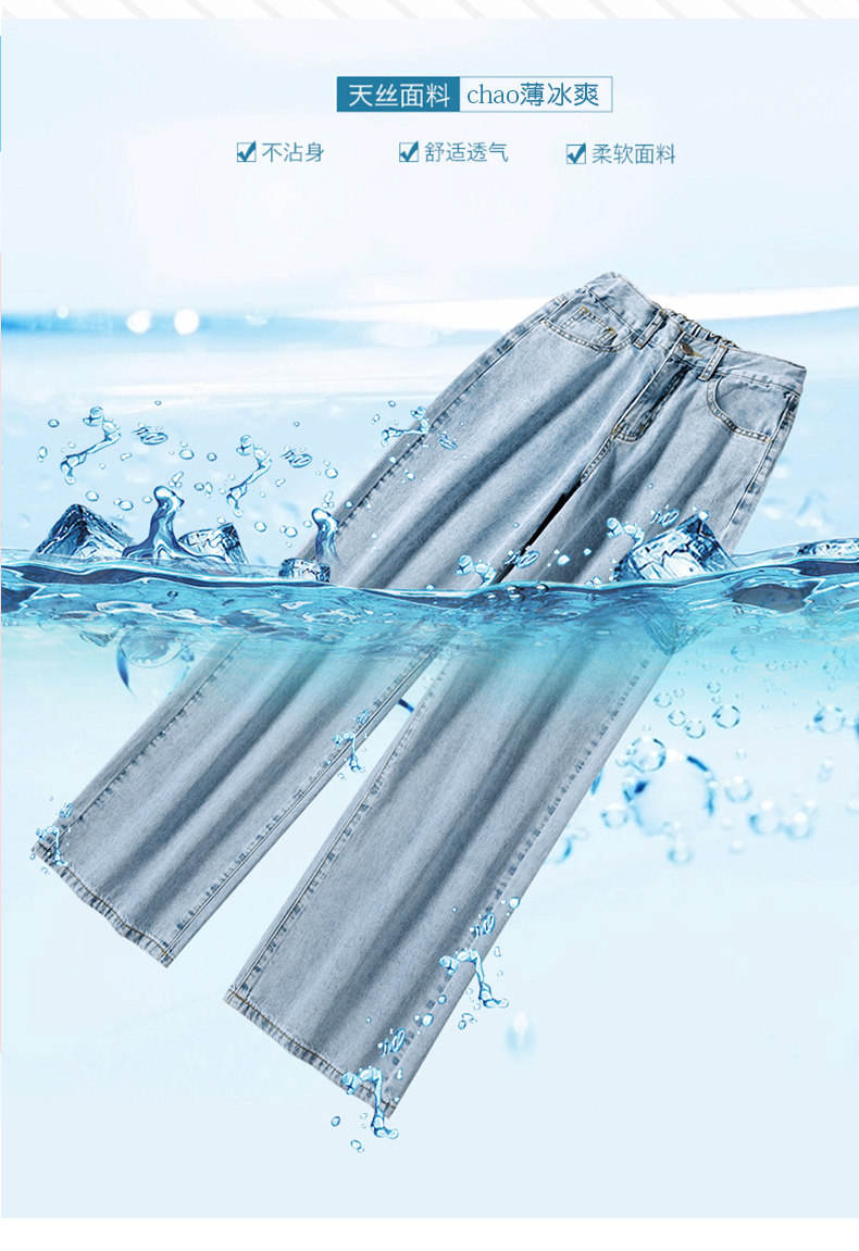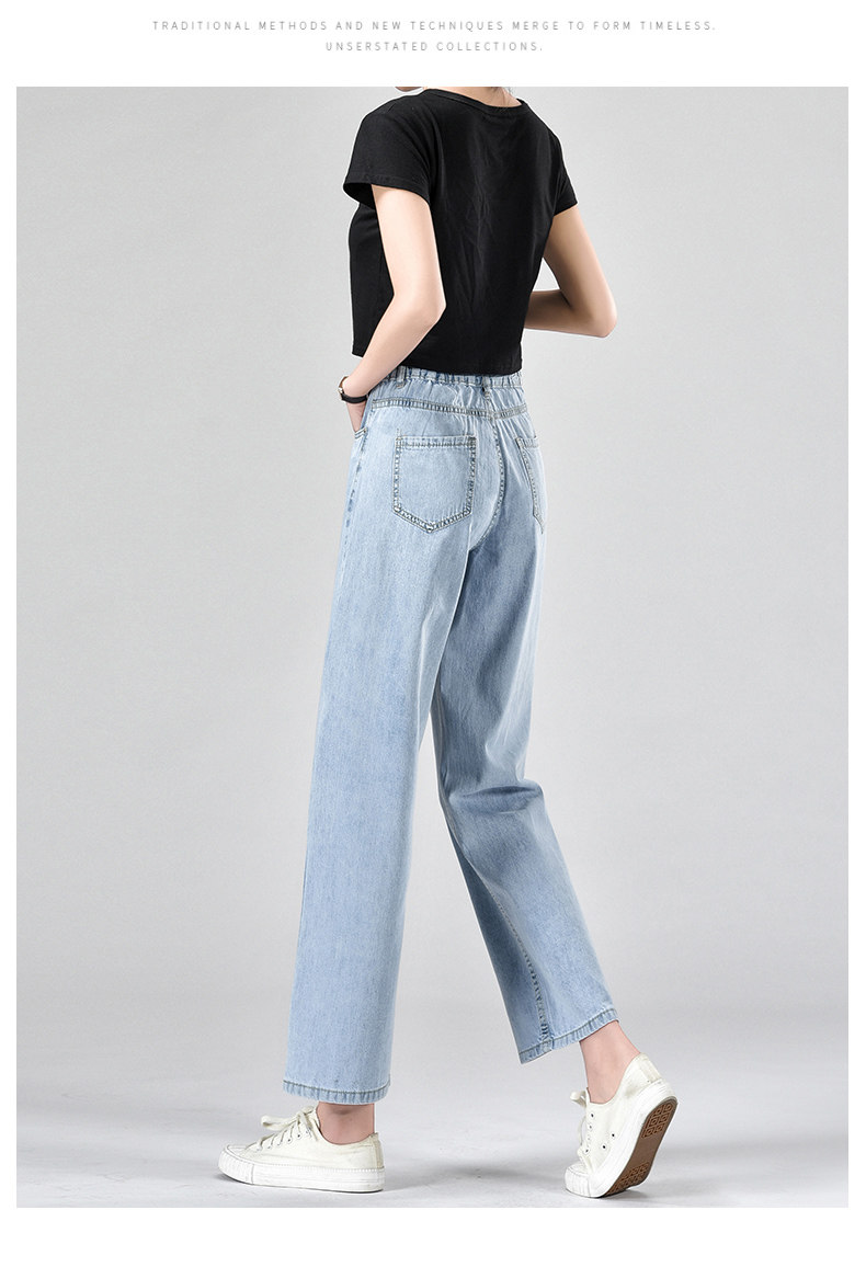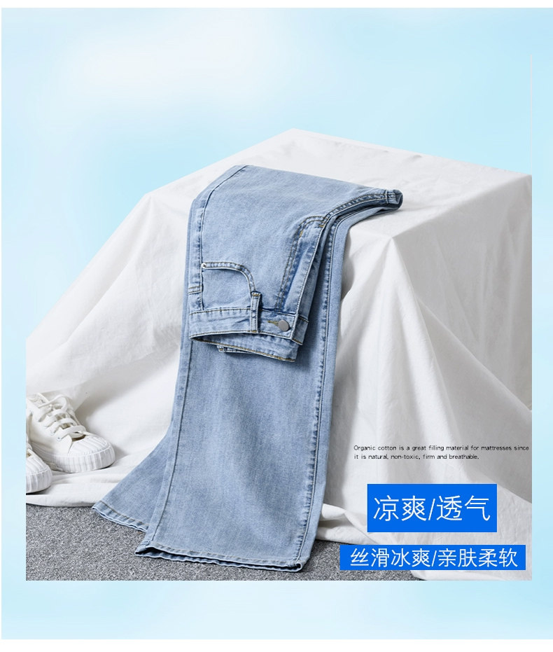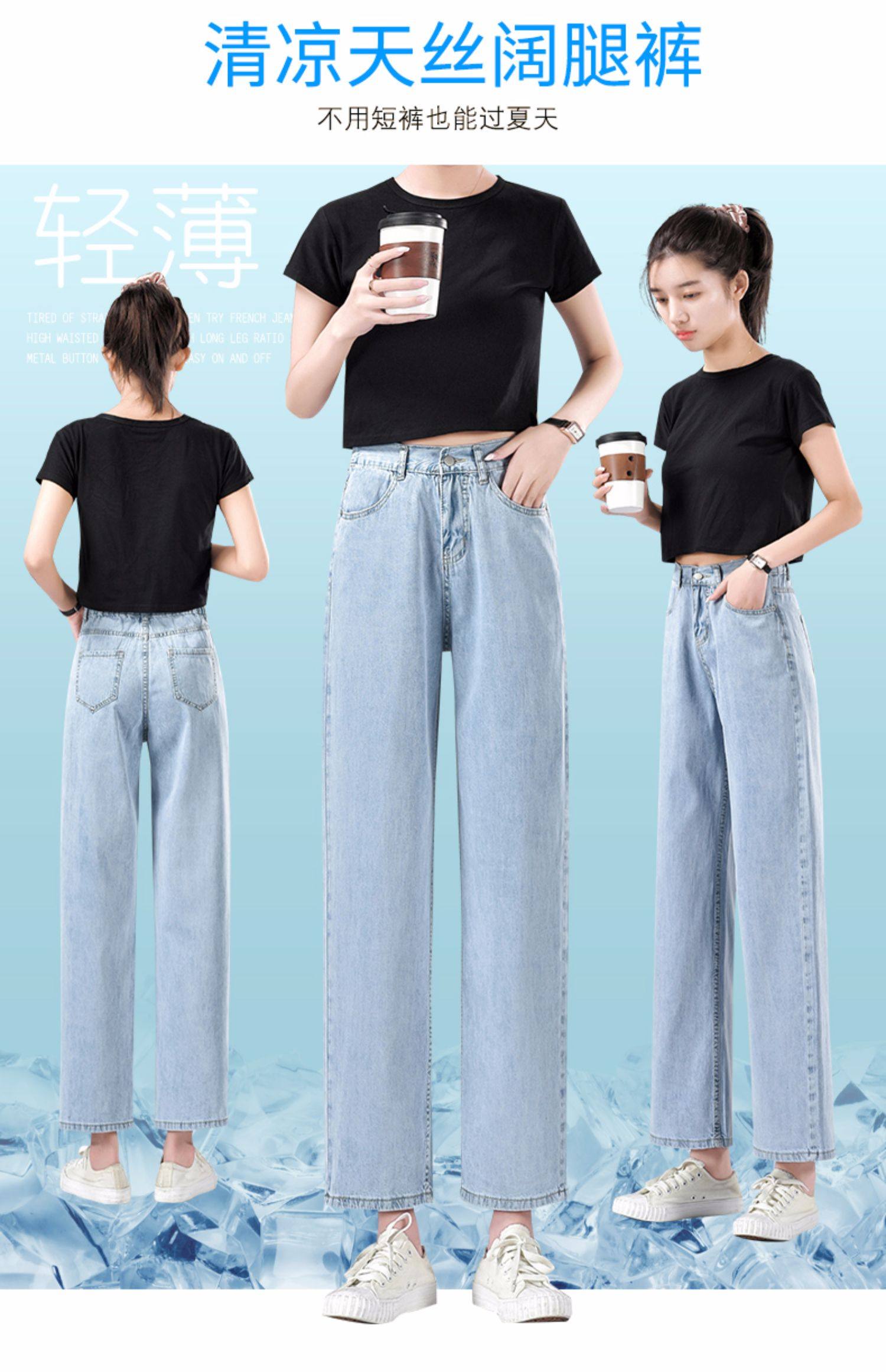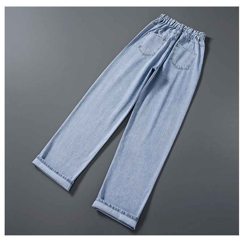 Джинсы, летние тонкие приталенные шелковые штаны, свободный прямой крой, высокая талия, подходит для подростков
