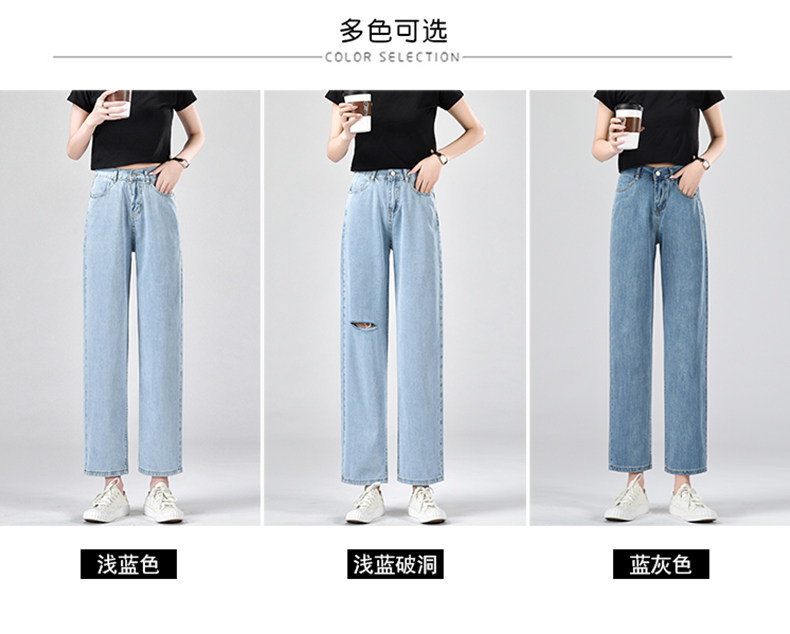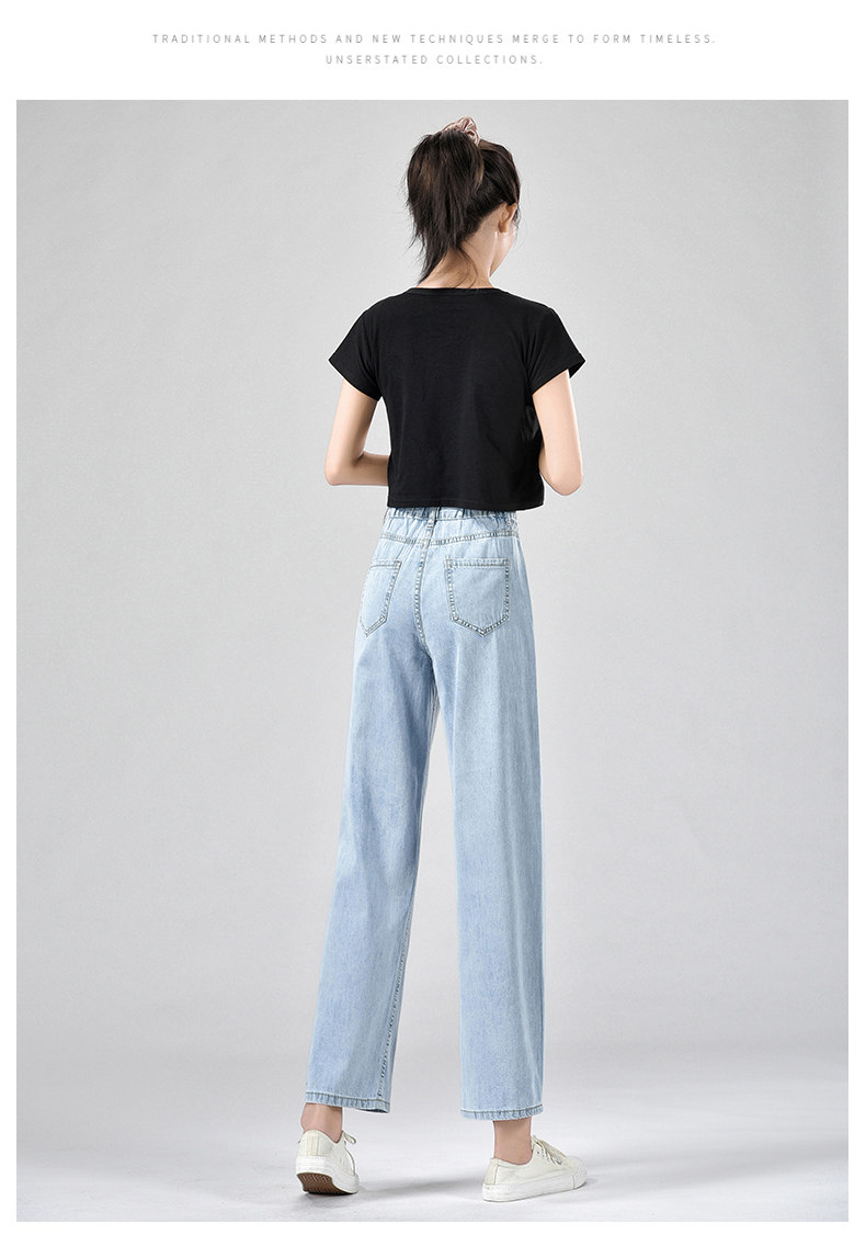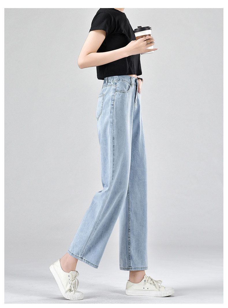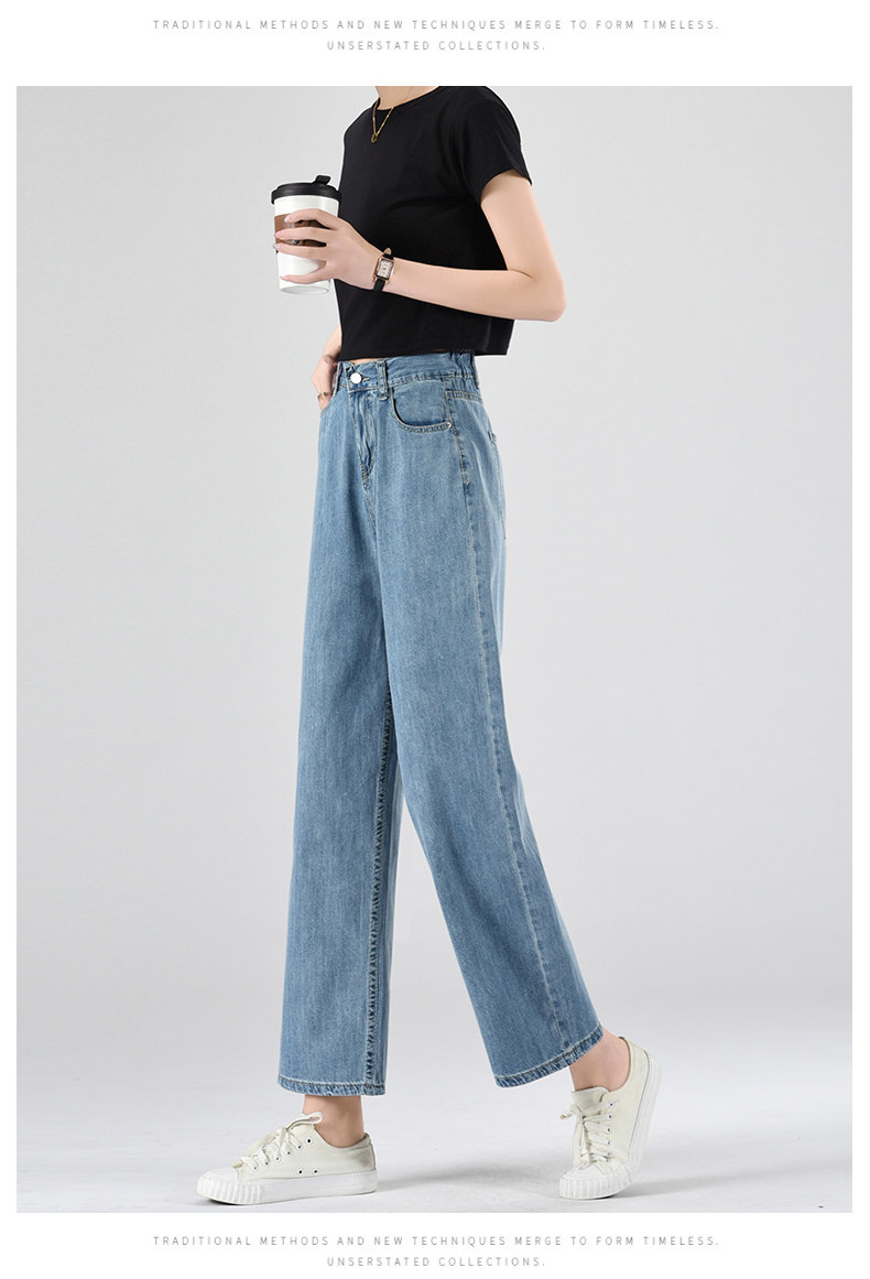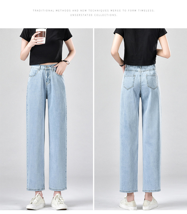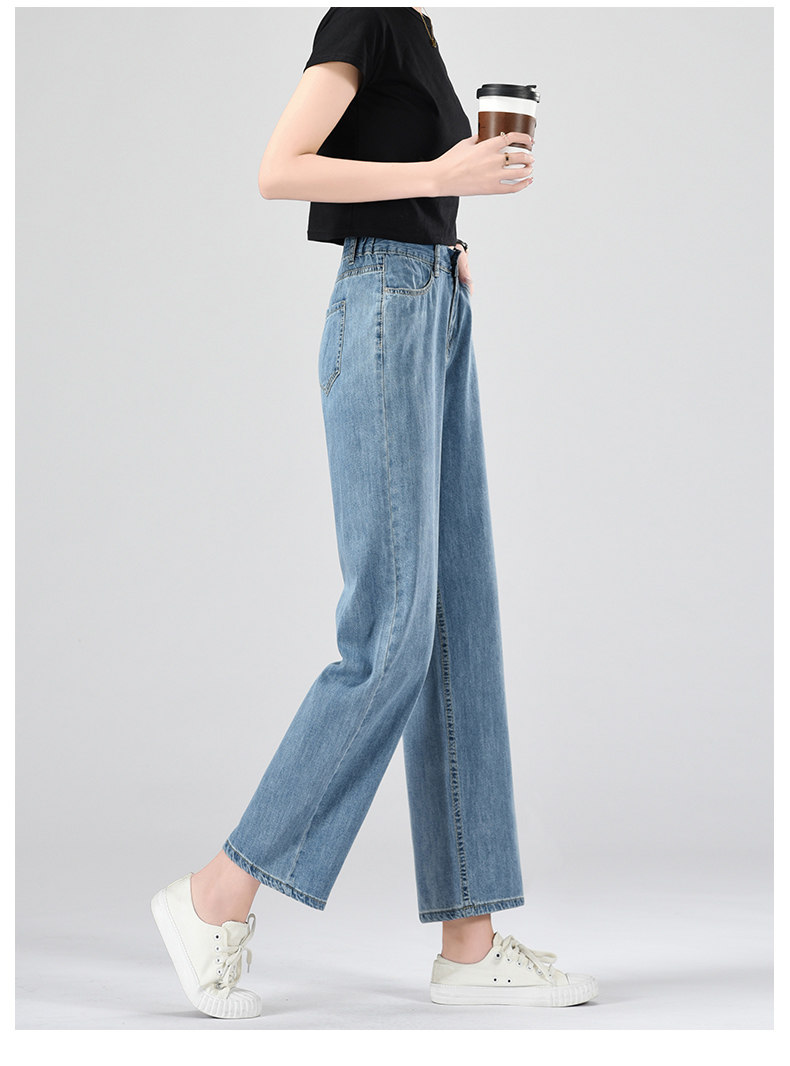 Джинсы, летние тонкие приталенные шелковые штаны, свободный прямой крой, высокая талия, подходит для подростков