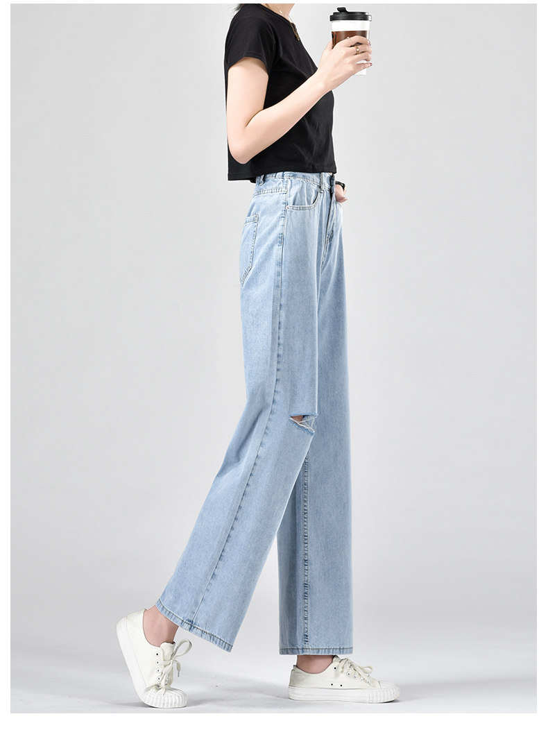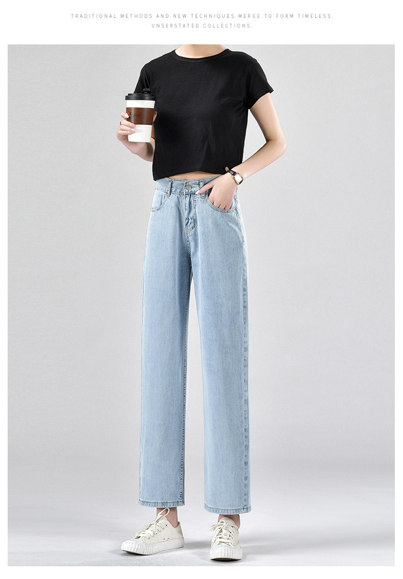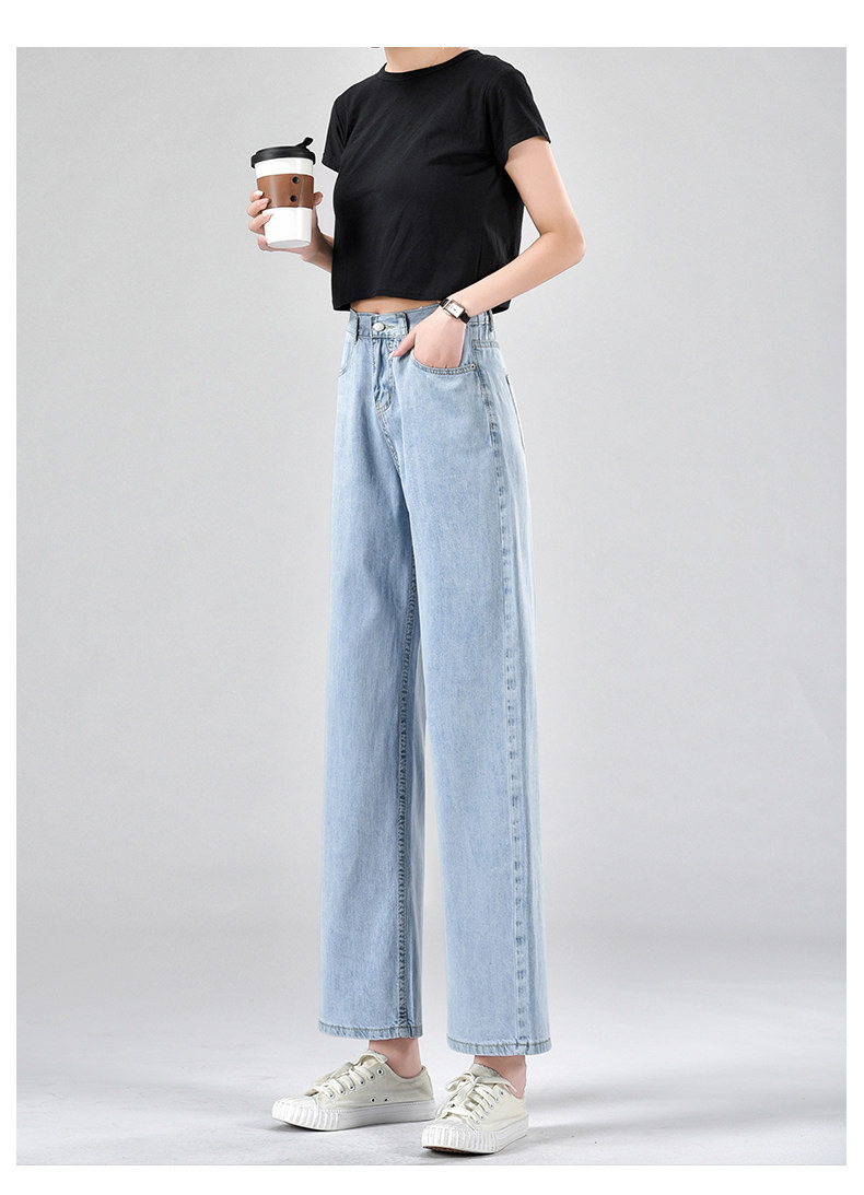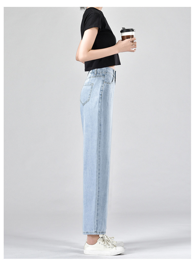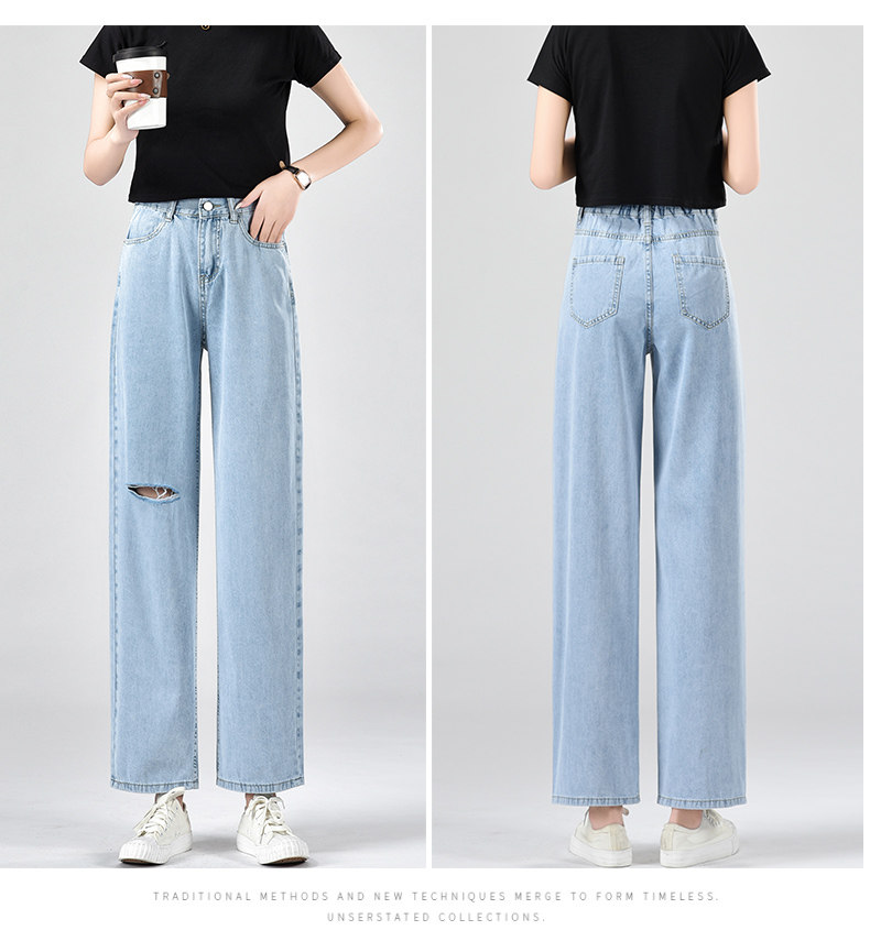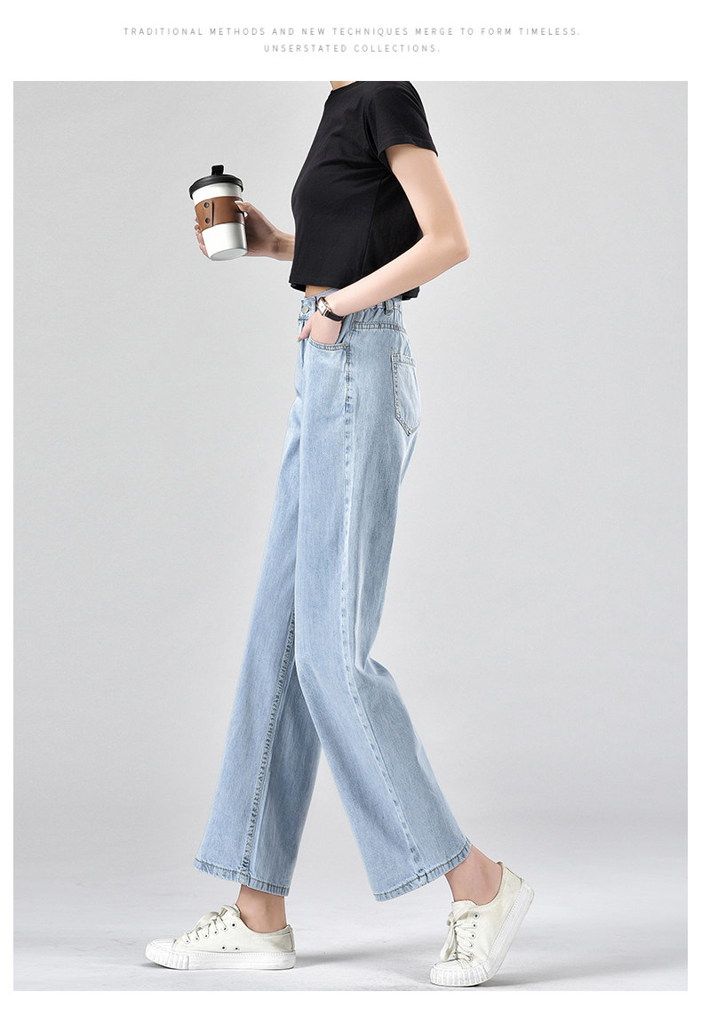 Джинсы, летние тонкие приталенные шелковые штаны, свободный прямой крой, высокая талия, подходит для подростков
