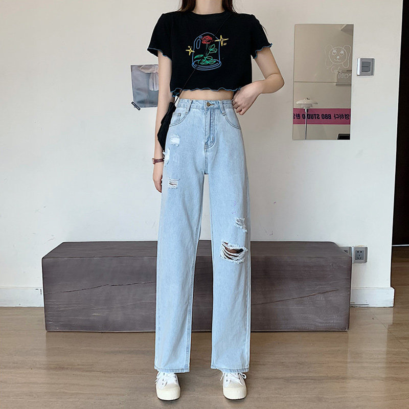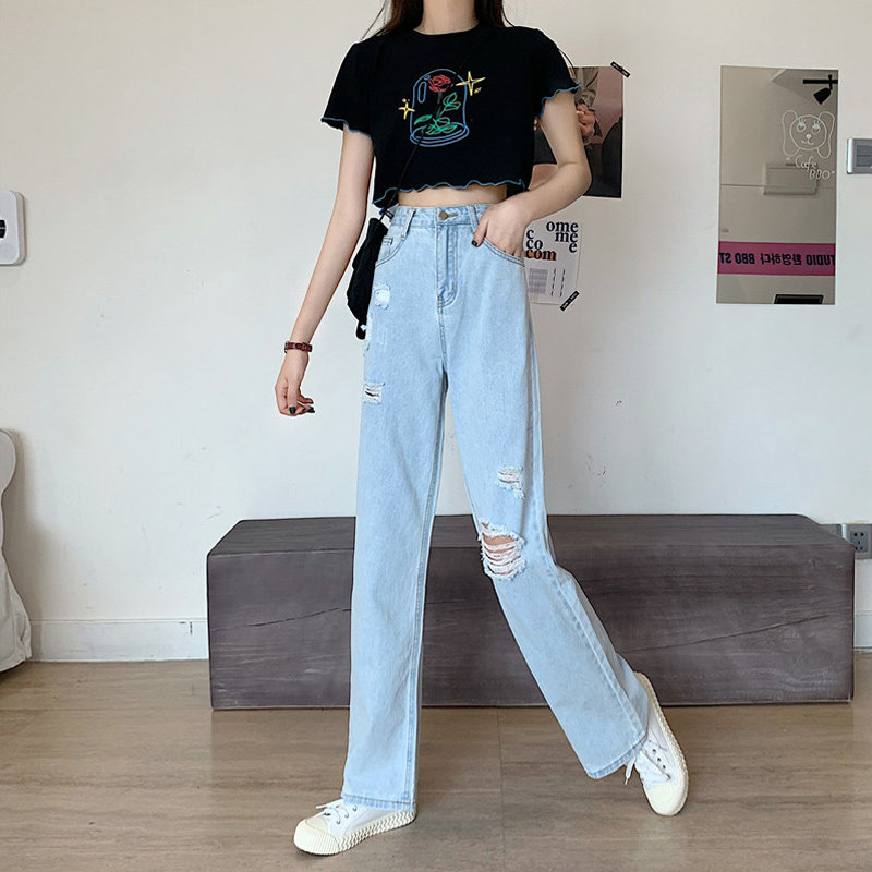 Джинсы, джинсовые штаны, подходит для подростков, свободный прямой крой, 2021 года, высокая талия