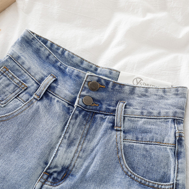 Приталенная джинсовая юбка, шорты, летние штаны, высокая талия, в корейском стиле, свободный крой, А-силуэт, большой размер