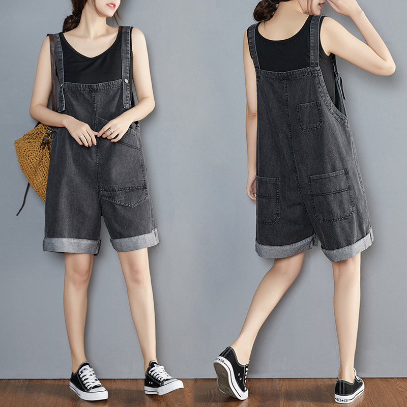 Джинсовые подтяжки, шорты, штаны, комбинезон, в корейском стиле, большой размер, свободный крой