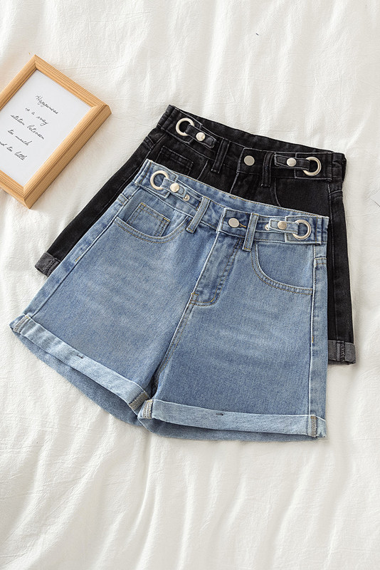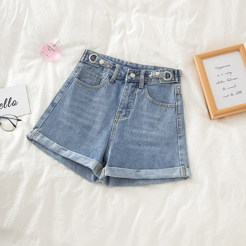 Джинсовая юбка, шорты, тонкие приталенные штаны, коллекция 2021, А-силуэт, в корейском стиле, свободный крой