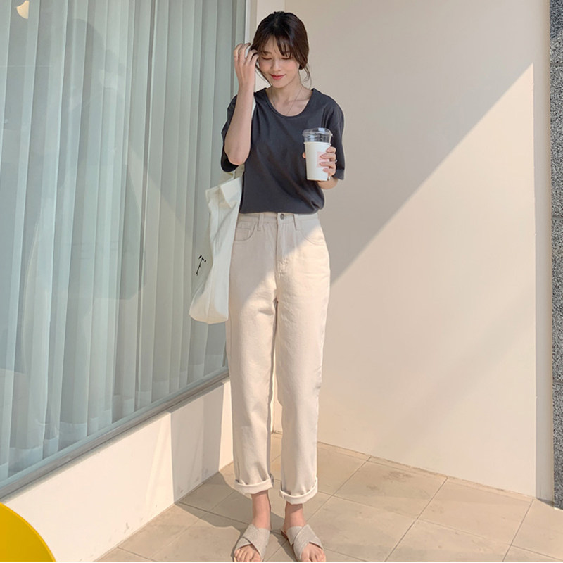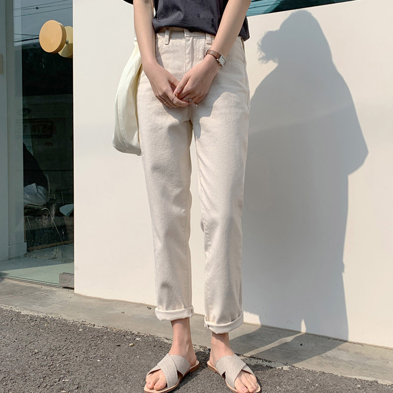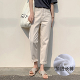Бежевые джинсы, весенние флисовые штаны, 2021 года, высокая талия, свободный прямой крой