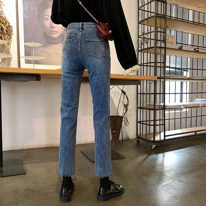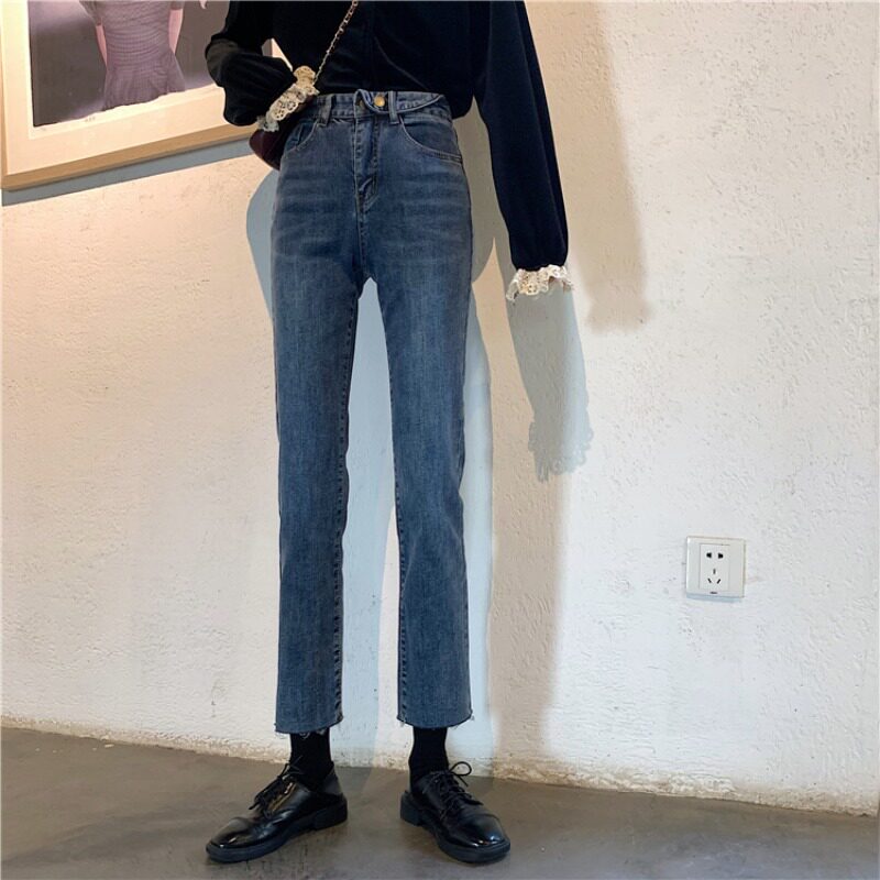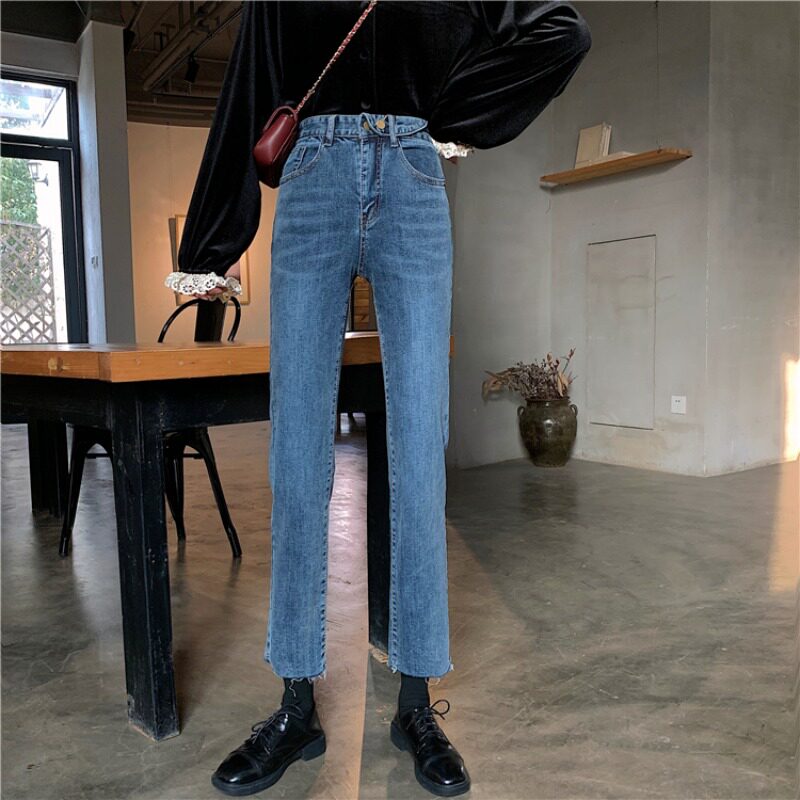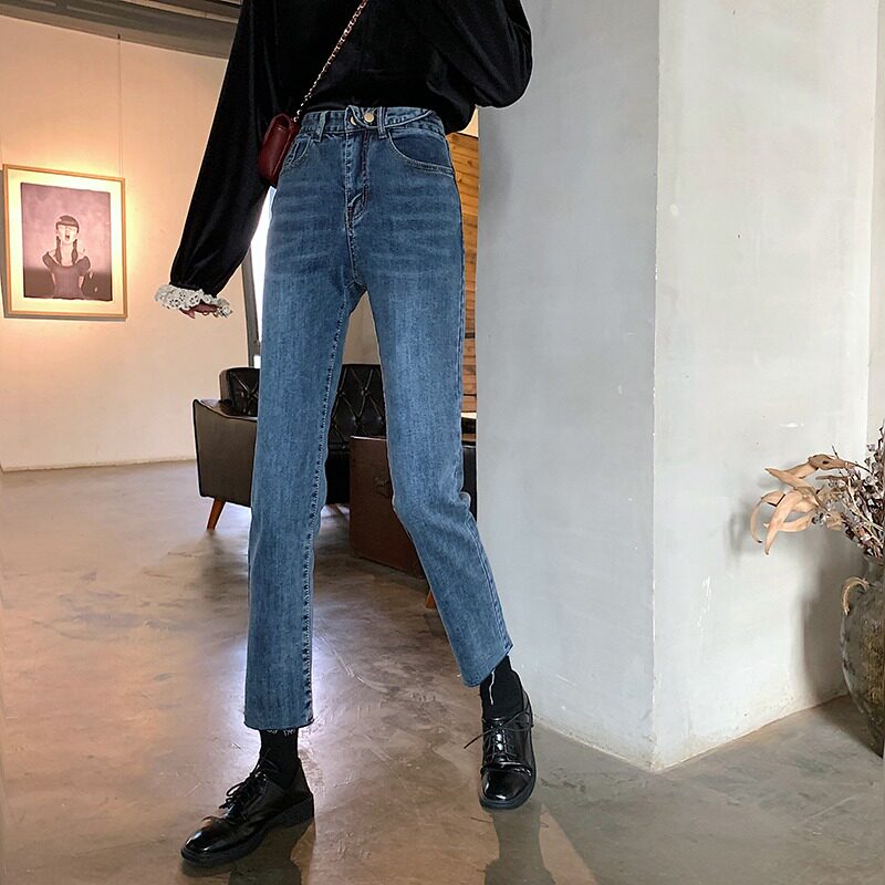 Приталенные ретро синие джинсовые штаны, свободный прямой крой, коллекция 2023, высокая талия, облегающий крой