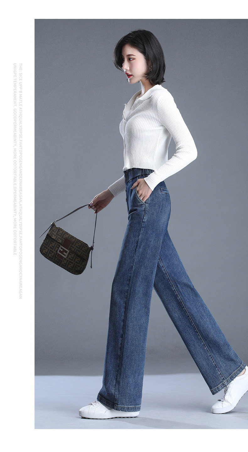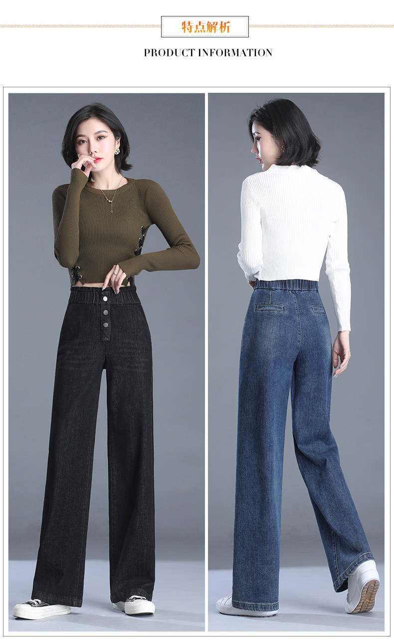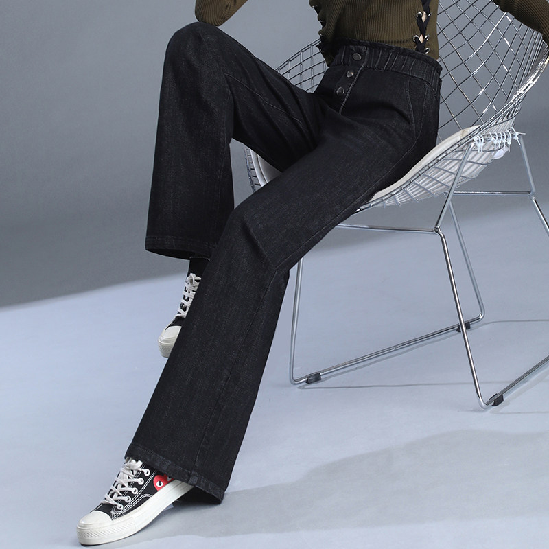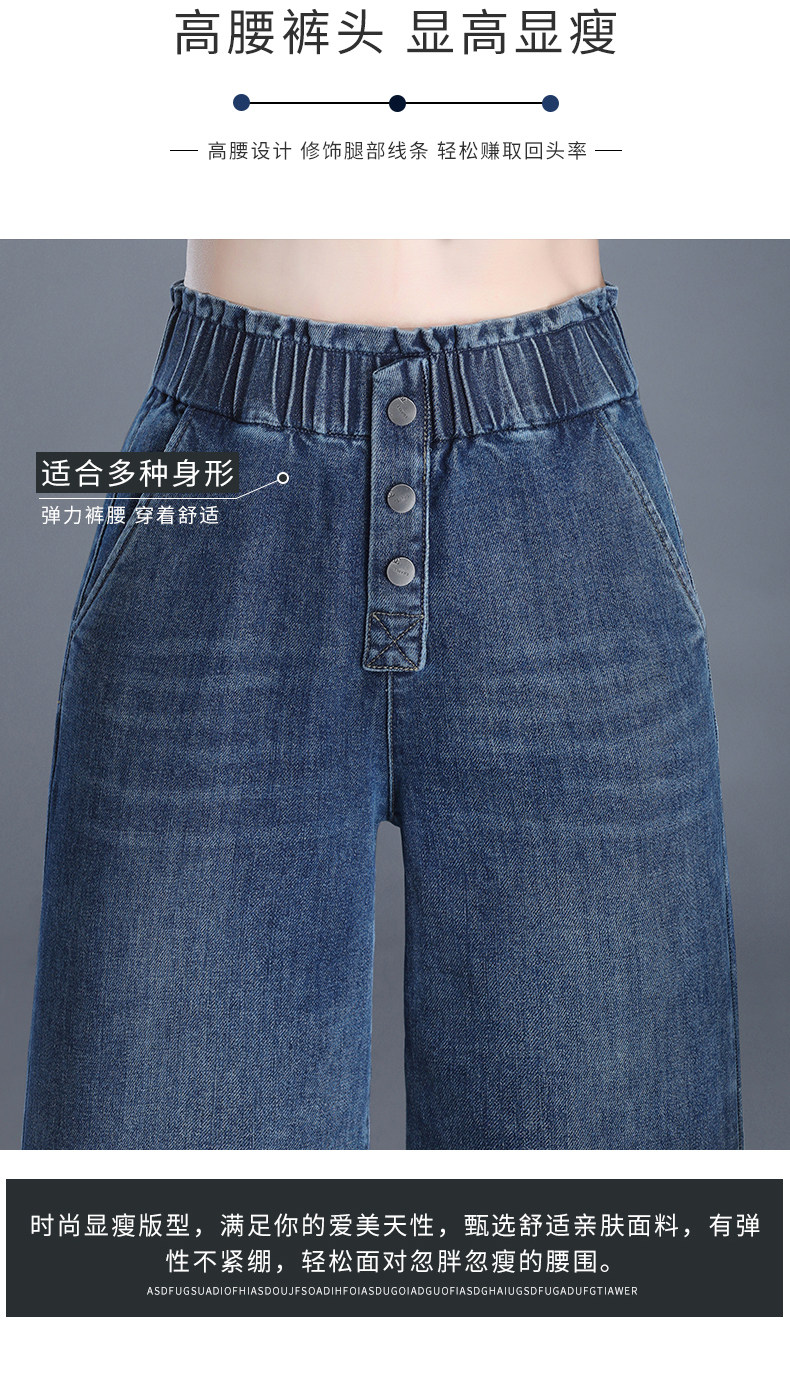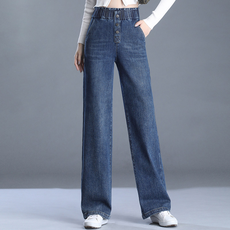 Весенние осенние джинсы, штаны, эластичная талия, высокая талия, большой размер, свободный прямой крой