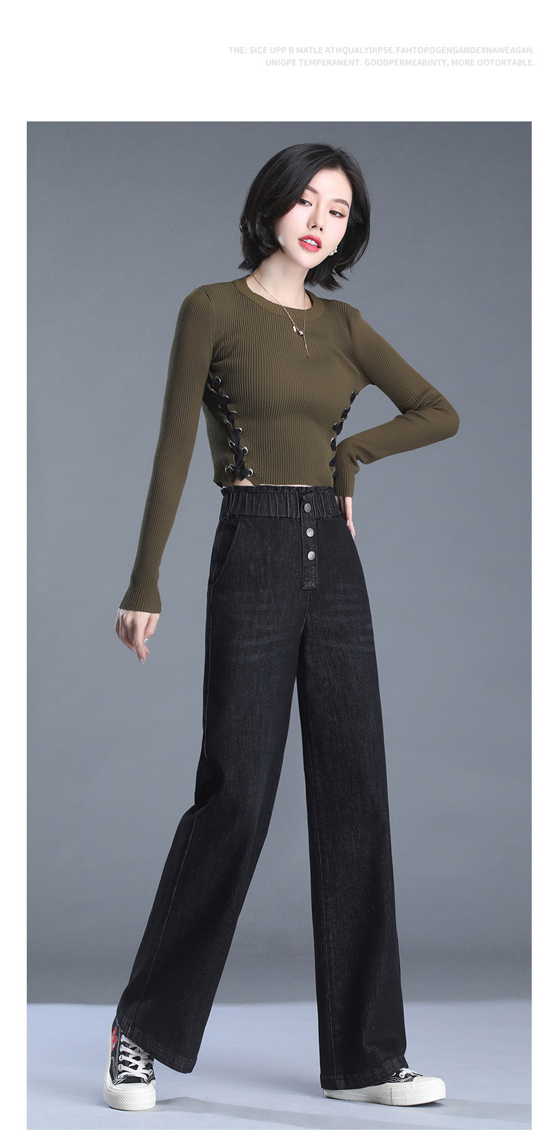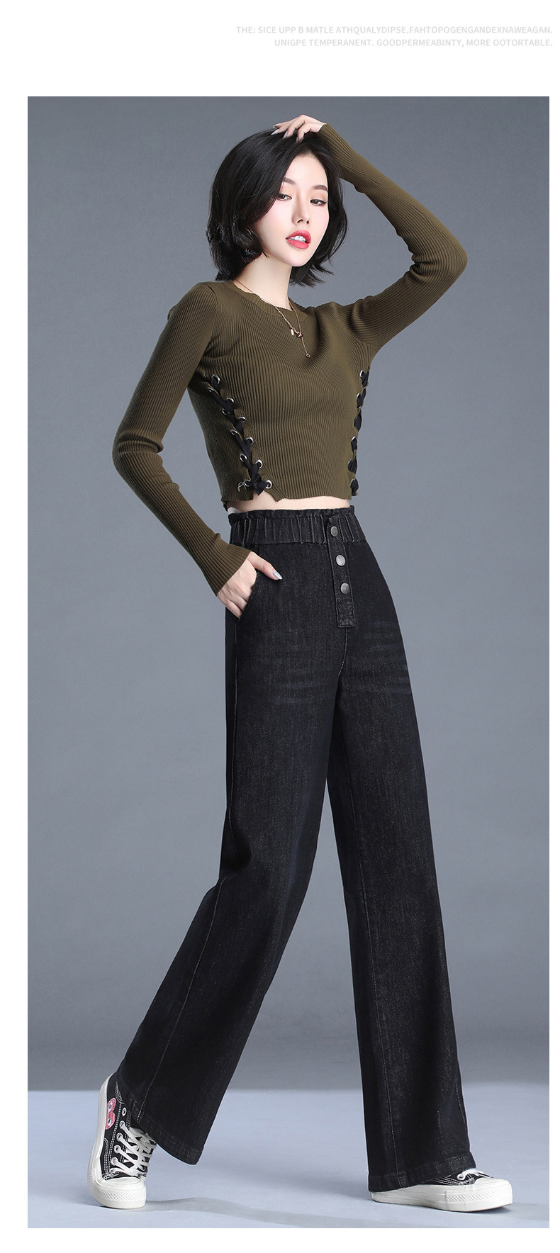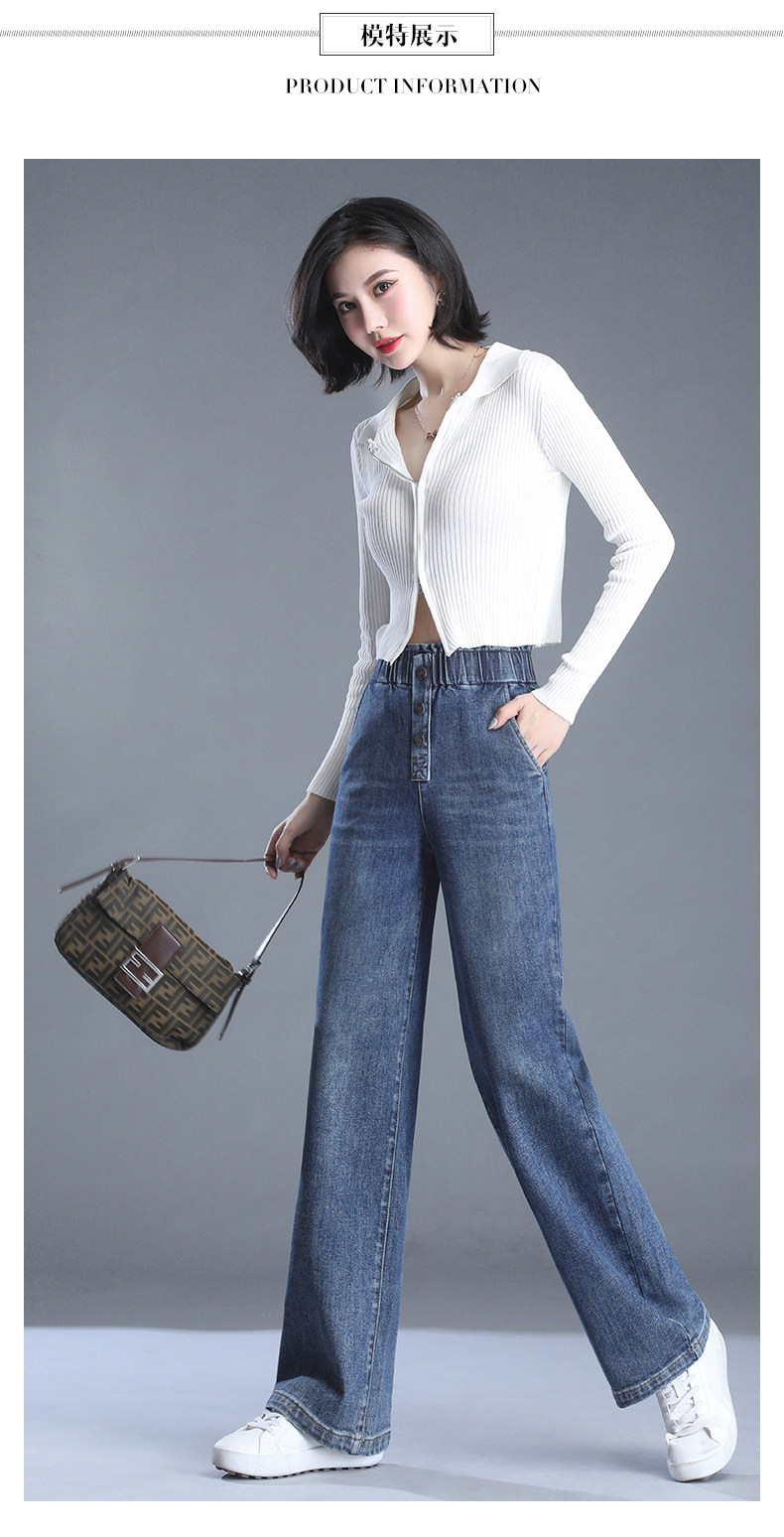 Весенние осенние джинсы, штаны, эластичная талия, высокая талия, большой размер, свободный прямой крой